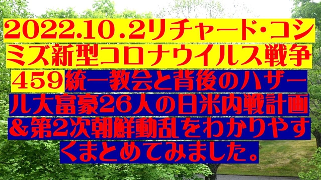 <span style="color: #cc4125;"><strong>「 テーマ:新型コロナウイルス戦争 459 」</strong></span><br><br><span style="color: #ff0000;"><strong>「『 統一教会と背後のハザール大富豪26人の日米内戦計画 』&『 第2次朝鮮動乱 』を<br> 分かりやすくまとめてみました 」</strong></span><br><br><strong>*「フォロー」・「ニコニ広告」・「いいね!」・「情報拡散」等、ご協力下さい。 リチャード・コシミズ</strong><br><br><span style="color: #38761d;">◆</span><span style="color: #38761d;"><strong>リチャード・コシミズ 公式 ブログ</strong></span><br> <a href="https://richard-koshimizu.jimdosite.com/" target="_blank" rel="noopener nofollow">https://richard-koshimizu.jimdosite.com/</a><br><br><span style="color: #38761d;">◆</span><span style="color: #38761d;"><strong>リチャード・コシミズ 公式 ホームページ<br> </strong></span><a href="http://richardkoshimizu.boo.jp/" target="_blank" rel="noopener nofollow">http://richardkoshimizu.boo.jp/</a><br><br><span style="color: #38761d;">◆</span><span style="color: #38761d;"><strong>リチャード・コシミズ 講演会 公式 動画ギャラリー</strong></span><br> <a href="http://www.t-sskk.com/richardkoshimizu/video-gallery/index.html" target="_blank" rel="noopener nofollow">http://www.t-sskk.com/richardkoshimizu/video-gallery/index.html</a><br>