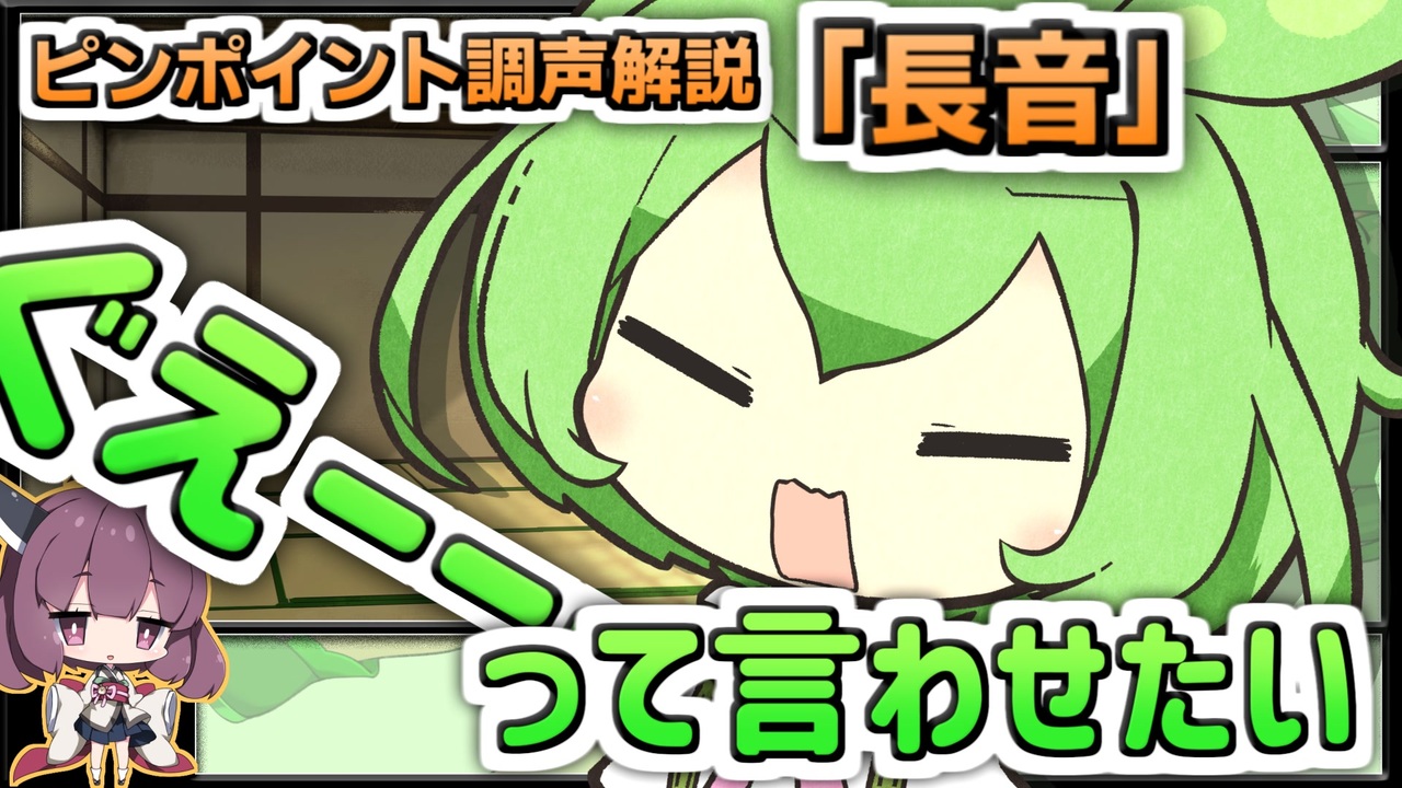 あなたの時間を無駄にするピンポイント調声解説のお時間です <br>・「あーーーー」や「ぐえーーーー」や「ぎゃーーーー」等の伸ばす音<br>・「あっ!」等のア行の短い音<br>について、今回は割と使用例の多そうな解説です<br><br>お品書き<br><span style="font-size: 10px;"><a href="#" class="seekTime" data-seekTime="0:00" onclick="seekNicoPlayer('#0:00'); return false;">#0:00</a> 茶番</span><br><span style="font-size: 24px;"><a href="#" class="seekTime" data-seekTime="1:27" onclick="seekNicoPlayer('#1:27'); return false;">#1:27</a> 解説</span><br><br>劇場類 : <a href="https://www.nicovideo.jp/series/272259" target="_blank" rel="noopener">series/272259</a><br>twitter : <a href="https://twitter.com/jugon_swt" target="_blank" rel="noopener nofollow">https://twitter.com/jugon_swt</a><br><br>VOICEVOX : ずんだもん<br><br>----<br><br>2022/10/10追記:後から気づいたんですが動画内で「ワ行」って言ってる部分<span style="font-size: 16px;"><strong>「ハ行」の方が良い声出ますねコレ。</strong></span>むしろワ行はハ行で気に入らなかった時のサブ案くらいの立ち位置