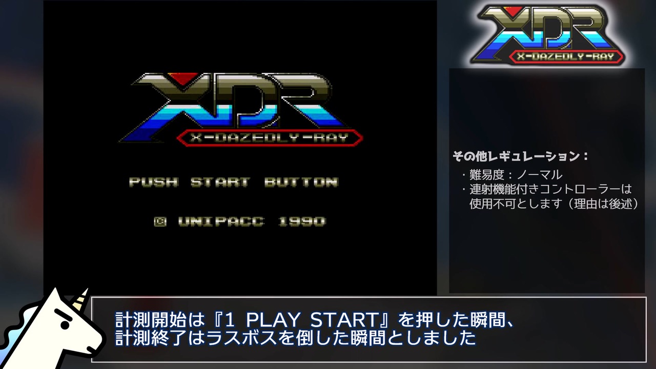 RTAのために買ったゲームの動画、初投稿です。<br>第五弾は1990年発売、メガドライブの伝説となったシューティング『XDR』のRTA動画です<br>『CURSE』のRTAはコチラ→<a href="https://www.nicovideo.jp/watch/sm40084800" class="watch">sm40084800</a><br><br>前作【GBC/メタモードany%】→<a href="https://www.nicovideo.jp/watch/sm40780142" class="watch">sm40780142</a><br>次作→【PS/聖刻1092 操兵伝フェンルートany%】→<a href="https://www.nicovideo.jp/watch/sm41305723" class="watch">sm41305723</a>(11/1の1時11分公開)<br><br>実機での世界記録(15:09)→<a href="https://youtu.be/SsL7faVTL6g" target="_blank" rel="noopener nofollow">https://youtu.be/SsL7faVTL6g</a><br>SpeedRun.comのページ→<a href="https://www.speedrun.com/xdr/full_game" target="_blank" rel="noopener nofollow">https://www.speedrun.com/xdr/full_game</a> (走者1人)<br><br><u>▽レギュレーション</u><br>計測開始:『1 PLAY START』を選択したタイミング<br>計測終了:ラスボスを倒したタイミング<br>その他:難易度Normal、ゲーム外の連射機能の使用不可<br><br><u>▽訂正</u><br>7:34 モブ-100(改) →モビ-100(改)<br> モブおじさんもの書いてたから……<br><br>*画像を引用させてもらったWebゲームマガジン『Beep21』様の記事<br><a href="https://note.com/beep21/n/n69f08be66633" target="_blank" rel="noopener nofollow">https://note.com/beep21/n/n69f08be66633</a><br><br>*エミュレーターを使用しています。<br>吸い出し器とソフトの画像はTwitter→ @Nagisa381rta で公開しています。<br><br>*クリエイター奨励プログラム&サポート受付中。今後とも応援よろしくお願いします。<br><br>鉢巻ヤンベェ様、底なし沼のイペタム様×2、鎌倉バーバリアン様×4、ゴハン様、わんだー様、CV様、髪無月様、yoppy31様、くはれ様、マカヒキ様、井之頭五郎様、NuruponZZ様、トペ・スイシーダ様、平胸盛様、kuro様、ヴぁにら様、ふくろう様、奴隷獣タカ様、JK様、マーモ様、Jack様、グレート9様×2、NS-ND05様、DR3様、pongiku様、ng51様、hirohiro2929様、yaken様、tatibana様、yoss様、ガッツ様、DECO様、匿名様、jalax様、きんちゃん様、うぽつ様×2、五万貸してくれ様、木下英一様、むかっち様、ぐら様、ぶー様、ゲスト様、くらば様、oun@様、yosi様、あさじろー様、<br>(通知順。日が変わって再度広告してくださった方は[×数字]で表記しています)<br>広告ありがとナス~!<br><br><br><a target="_blank" href="https://qa.nicovideo.jp/faq/show/19424?site_domain=default" style="font-size: 13px;color: #657586; text-decoration: underline; line-height: 1.4">この動画は投稿者によって修正されました</a>