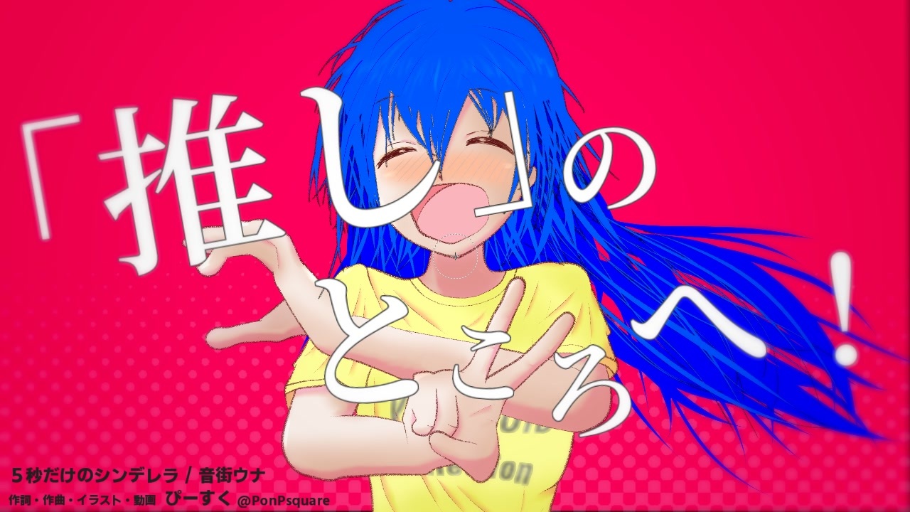11曲目。女子高生軽音楽部オリジナル曲っぽいの。<br>短い時間でも「推し」に会いに行くことで、日々のやる気を貰う女の子の曲です!<br>イラストや動画、全部自分でやりました!曲の終わり方がお気に入りです!<br><span style="color: #ff0000; font-size: 18px;"><strong>ぜひ曲の最後に「がんばるぞ!」のコメントを下さい!</strong></span><br><br><br>作詞・作曲・イラスト・動画 ぴーすく <a href="https://twitter.com/PonPsquare" target="_blank" rel="noopener nofollow">https://twitter.com/PonPsquare</a><br>ボーカル:音街ウナ<br>コーラス:初音ミク<br>告知 <a href="https://twitter.com/PonPsquare/status/1578399763589832704" target="_blank" rel="noopener nofollow">https://twitter.com/PonPsquare/status/1578399763589832704</a><br>曲データ・OffVocal <a href="https://piapro.jp/psquare_midi" target="_blank" rel="noopener nofollow">https://piapro.jp/psquare_midi</a><br>歌コレでの二次利用可はご自由にどうぞ!<br><br><br>---以下、歌詞---<br>その世界ならキラキラお姫様<br>そう私は5秒だけのシンデレラ<br><br>通知画面に届くヤバそーなニュース<br>興味なんて無いやっぱねわかんない<br>今の自分にずっと不満つのるの<br>だってねほらモヤモヤしてばかりじゃね?<br><br>現実忘れて行くの 「推し」のところへ!<br><br>ハート作って<br>その世界ならキラキラお姫様<br>少しだけでいいの 夢をみさせて<br>鍵開けてチェキに写った王子様<br>そう私は5秒だけのシンデレラ<br><br><br>今日も昨日も明日も毎日がね<br>リアルは忘れたいやっぱねつまんない<br>ストレス溜まる日々は不満つのるの<br>だってねほらイライラしてばかりじゃね?<br><br>現実忘れて行くの 「推し」のところへ!<br><br>ハート作って<br>その世界ならキラキラお姫様<br>少しだけでいいの<br>忘れさせてね<br>色眼鏡ぶっこわしてよ王子様ぶちこわしてよ<br>そう私は5秒だけのシンデレラ<br><br><br>現実忘れて行くの 「推し」のところへ!<br><br>ハート作って<br>その世界ならキラキラお姫様<br>少しだけでいいの<br>「やる気」下さい<br>明日からのモチベ↑アゲてね王子様<br>そう私は5秒だけのシンデレラ<br><br><br>あしたもがんばるぞ!<br>