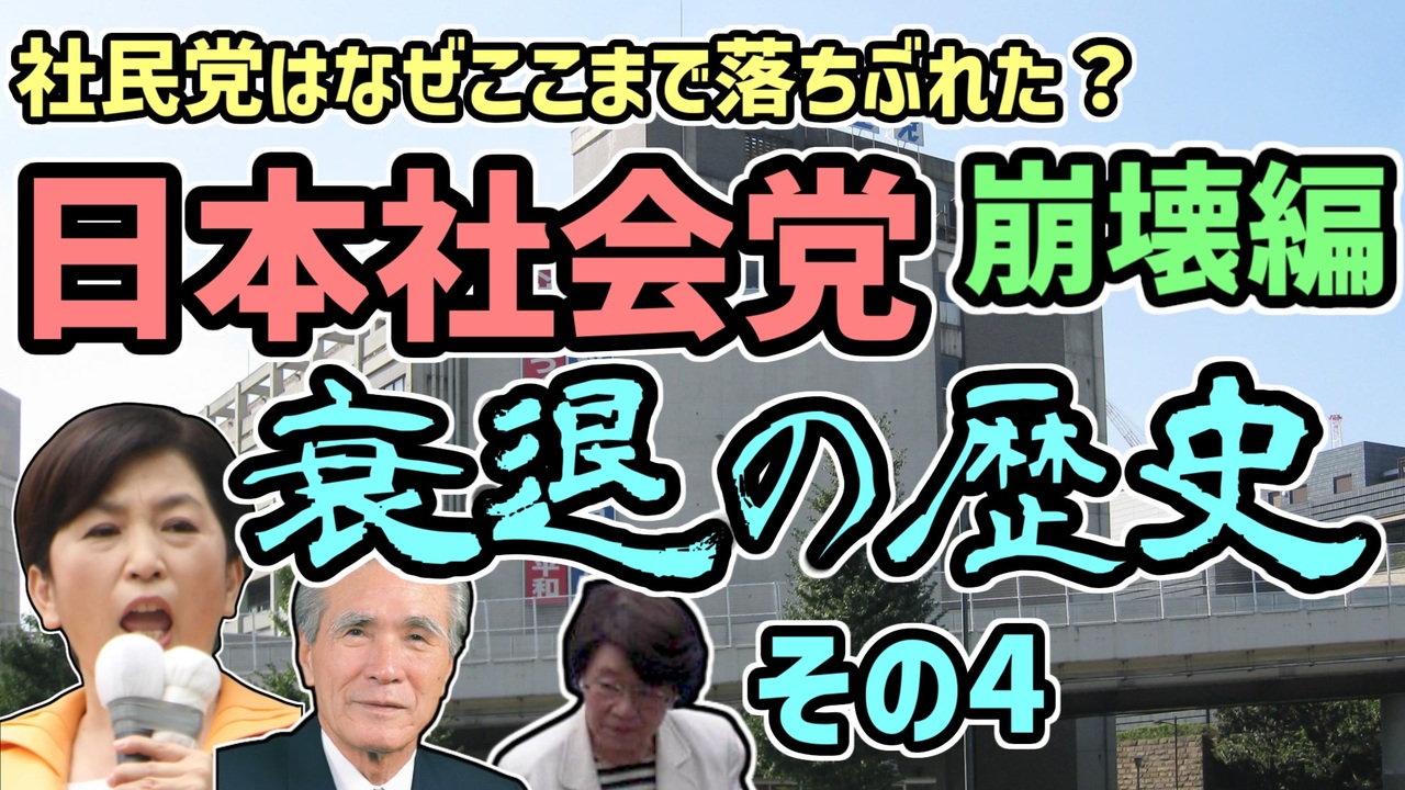 今シリーズはどれも動画時間が20分を軽く超えてしまったのですが動画時間の目安として長いと思いますか?ちょうどいいと思いますか?<br>コメントで意見があれば教えていただきたいです。<br><br>今シリーズでは「なぜ社会党は衰退してしまったのか」、衰退という負の面から見た日本社会党の歴史を解説します。<br>今回は1970年代後半から現在について。<br><br>次回→<a href="https://www.nicovideo.jp/watch/sm41285856" class="watch">sm41285856</a> (非武装中立論)<br>前回→<a href="https://www.nicovideo.jp/watch/sm41089528" class="watch">sm41089528</a><br>マイリスト:<a href="https://www.nicovideo.jp/mylist/73590554" target="_blank" rel="noopener">mylist/73590554</a><br><br>ご意見・ご感想・ご要望があればぜひコメントしてください。<br>内容の都合上かなり端折ってますがご了承ください。<br><br>ついったー <a href="https://twitter.com/youz26400114" target="_blank" rel="noopener nofollow">https://twitter.com/youz26400114</a><br><br>欲しいものリスト <a href="https://www.amazon.co.jp/hz/wishlist/ls/26SYYFRSTGV7Y/" target="_blank" rel="noopener nofollow">https://www.amazon.co.jp/hz/wishlist/ls/26SYYFRSTGV7Y/</a>