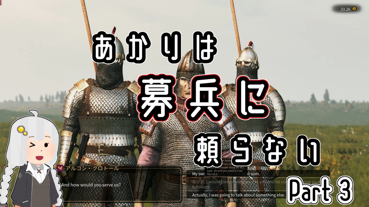 サクサク進めまーす<br><br>Game:<br>Mount&Blade2:Bannerlord 1.8.1<br><br>MOD:<br>Distinguished Service 5.1.5 <a href="https://www.nexusmods.com/mountandblade2bannerlord/mods/1101" target="_blank" rel="noopener nofollow">https://www.nexusmods.com/mountandblade2bannerlord/mods/1101</a><br>Realistic Battle MOD 3.0.3 <a href="https://www.nexusmods.com/mountandblade2bannerlord/mods/791" target="_blank" rel="noopener nofollow">https://www.nexusmods.com/mountandblade2bannerlord/mods/791</a><br><br>BGM:<br>Uneasiness <a href="https://dova-s.jp/bgm/play11258.html" target="_blank" rel="noopener nofollow">https://dova-s.jp/bgm/play11258.html</a><br>タンク・ファイア <a href="https://dova-s.jp/bgm/play9673.html" target="_blank" rel="noopener nofollow">https://dova-s.jp/bgm/play9673.html</a><br><br>Font:<br>しねきゃぷしょん<br>ロンドBスクエア<br />投稿者ツイッタ<br>馬刺しの人@onazimaimai