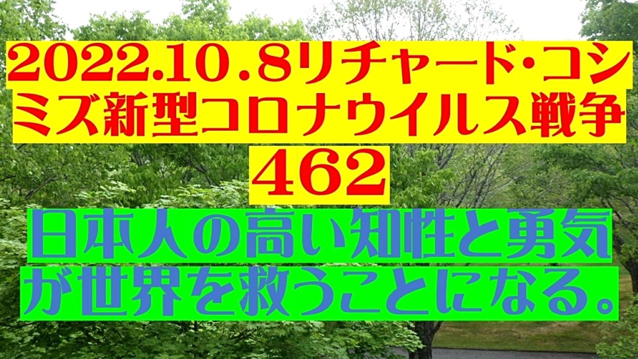 <span style="color: #cc4125;"><strong>「 テーマ:新型コロナウイルス戦争 462 」</strong></span><br><br><span style="color: #ff0000;"><strong>「『 日本人の高い知性と勇気 』が『 世界を救う 』ことになる 」</strong></span><br><br>【統一邪教朝鮮人幹部の恫喝】<br><br> ◆田中吸血鬼<br> 「おい、岸田!16兆円の使途不明金から、統一教会経由で北朝鮮に献金したことをばらすぞ!」<br><br> ◆岸田文雄奴隷<br> 「ほとぼりが冷めたら、統一教会様の活動を許しますから、今は、絶縁したことにして下さいませ!」<br><br> ◆田中吸血鬼<br> 「誓約書出せ、誓約書!お前のロリータ性愛写真を表に出すぞ!」<br><br><strong>*「フォロー」・「ニコニ広告」・「いいね!」・「情報拡散」等、ご協力下さい。 リチャード・コシミズ</strong><br><br><span style="color: #38761d;">◆</span><span style="color: #38761d;"><strong>リチャード・コシミズ 公式 ブログ</strong></span><br> <a href="https://richard-koshimizu.jimdosite.com/" target="_blank" rel="noopener nofollow">https://richard-koshimizu.jimdosite.com/</a><br><br><span style="color: #38761d;">◆</span><span style="color: #38761d;"><strong>リチャード・コシミズ 公式 ホームページ<br> </strong></span><a href="http://richardkoshimizu.boo.jp/" target="_blank" rel="noopener nofollow">http://richardkoshimizu.boo.jp/</a><br><br><span style="color: #38761d;">◆</span><span style="color: #38761d;"><strong>リチャード・コシミズ 講演会 公式 動画ギャラリー</strong></span><br> <a href="http://www.t-sskk.com/richardkoshimizu/video-gallery/index.html" target="_blank" rel="noopener nofollow">http://www.t-sskk.com/richardkoshimizu/video-gallery/index.html</a><br>