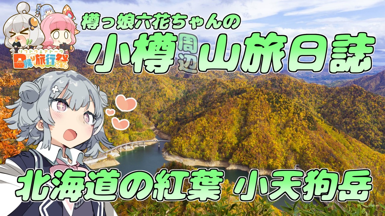 日帰り旅行祭に登山動画は初投稿です!<br><br>日帰り旅行祭2本目になります!<br>もうすぐ紅葉が平地まで降りてくるということで、去年登った札幌定山渓にある小天狗岳登山を動画にしてみました<br>本州と違う紅葉はまた違った味わいがあるので、この時期に北海道に来られる方は是非ご覧になっていただきたい光景ですね!<br><br>動画の方は封印してただけあってガバ撮影・素材不足で見づらい場面も多いと思います<br>ユルシテユルシテ...<br>...あと小樽ではありません<br><br>●訪問地<br>北海道札幌市定山渓<br>小天狗岳<br>標高764.7m<br><br>●日帰り旅行祭 <br>主催 フミ様<br>告知動画 <a href="https://www.nicovideo.jp/watch/sm40889543" class="watch">sm40889543</a><br><br>●祭りロゴ:<br> サボペン様<br>「日帰り旅行祭」ロゴ <a href="https://seiga.nicovideo.jp/seiga/im11009932" target="_blank" rel="noopener">im11009932</a><br> <br>●お借りしたもの<br>・【素材】小春六花立ち絵 からい様<br>・なんでも革命 beco様<br><br>他コンテンツツリー参照<br><br>週末日記帳:<a href="https://twitter.com/tyama_takenoko" target="_blank" rel="noopener nofollow">https://twitter.com/tyama_takenoko</a><br><br>