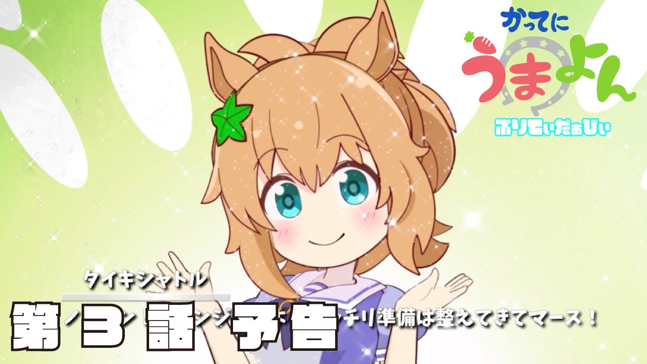 うまよん×ウマ娘プリティーダービーの2次創作です。<br><br>3話の予告動画になります!本編は21日に投稿しますので<br>今しばらくお待ち下さい!<br><br>皆様がカワイイを堪能できるように頑張りますので、ぜひ<br>いいねとチャンネル登録よろしくお願いします!<br><br>欲しい物リスト→<a href="http://onl.tw/5xn3zFc" target="_blank" rel="noopener nofollow">http://onl.tw/5xn3zFc</a><br><br>TWITTER<br><a href="https://twitter.com/shittorieditor" target="_blank" rel="noopener nofollow">https://twitter.com/shittorieditor</a><br><br>4コママンガはじめました。<br>おたすけキタちゃん!<br><a href="https://seiga.nicovideo.jp/comic/59823" target="_blank" rel="noopener nofollow">https://seiga.nicovideo.jp/comic/59823</a><br><br>ピクシブ<br><a href="https://www.pixiv.net/user/74562487/series/165623" target="_blank" rel="noopener nofollow">https://www.pixiv.net/user/74562487/series/165623</a><br><br>高画質版↓<br>しっとりウマ娘チャンネル<br><a href="https://www.youtube.com/channel/UCji0ri6JuFyIQMeI4VTH6oQ" target="_blank" rel="noopener nofollow">https://www.youtube.com/channel/UCji0ri6JuFyIQMeI4VTH6oQ</a><br><br>コメント版(ニコニコ)↓<br><a href="https://www.nicovideo.jp/series/357197" target="_blank" rel="noopener nofollow">https://www.nicovideo.jp/series/357197</a><br><br>ファンボックス<br><a href="https://shittorieditor.fanbox.cc/" target="_blank" rel="noopener nofollow">https://shittorieditor.fanbox.cc/</a><br><br><br>