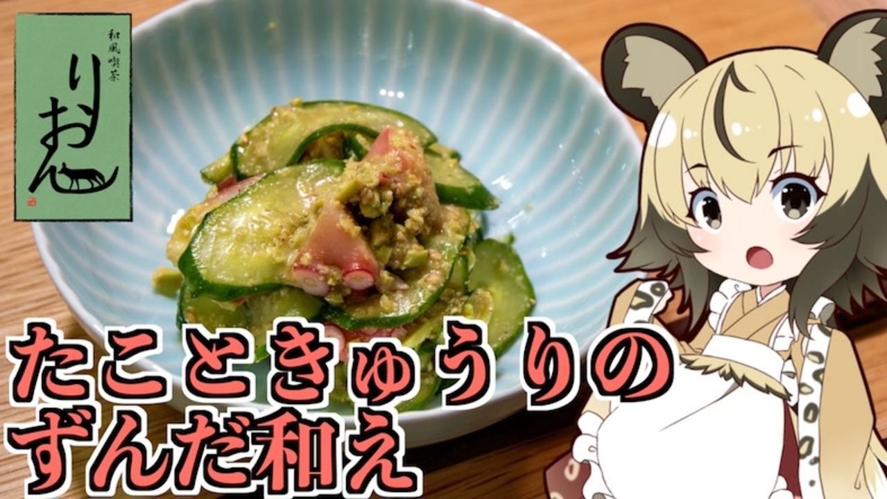 今回は「たこときゅうりのずんだ和え」を作っていきましょう。<br><br>AIのお絵描きばりぐっどくんがどうしてもずんだ餅を描いてくれないので、<br>ずんだを使った料理を作っていきましょう。<br><br>■材料<br>・ゆでだこ 足1本<br>・きゅうり 1本<br>・枝豆 お好みの量<br>・すりごま 小さじ2<br> (or 練りごま)<br><br>・出汁醤油 大さじ1<br> (or めんつゆ)<br>・砂糖 少々<br>・わさび お好みの量<br>・塩<br><br><br>■所要時間<br>作業時間:15分<br><br><br>youtube:<a href="https://youtu.be/dK9Xtj3_Ej4" target="_blank" rel="noopener nofollow">https://youtu.be/dK9Xtj3_Ej4</a><br>twitter:@lycaon_kitchen<br><br>りおんの和風喫茶:<a href="https://www.nicovideo.jp/series/77190" target="_blank" rel="noopener">series/77190</a><br>おつかれごはん:<a href="https://www.nicovideo.jp/series/155690" target="_blank" rel="noopener">series/155690</a><br>手作り和菓子でちょっとひとやすみしませんか?:<a href="https://www.nicovideo.jp/series/155691" target="_blank" rel="noopener">series/155691</a><br><br>立ち絵:星華 彩二魔 様<br>イラスト:いらすとや、AWD kitchen<br>音源:DOVA-SYNDROME、ポケットサウンド<br>音声:VOICEROID2 紲星あかり + exVOICE<br>