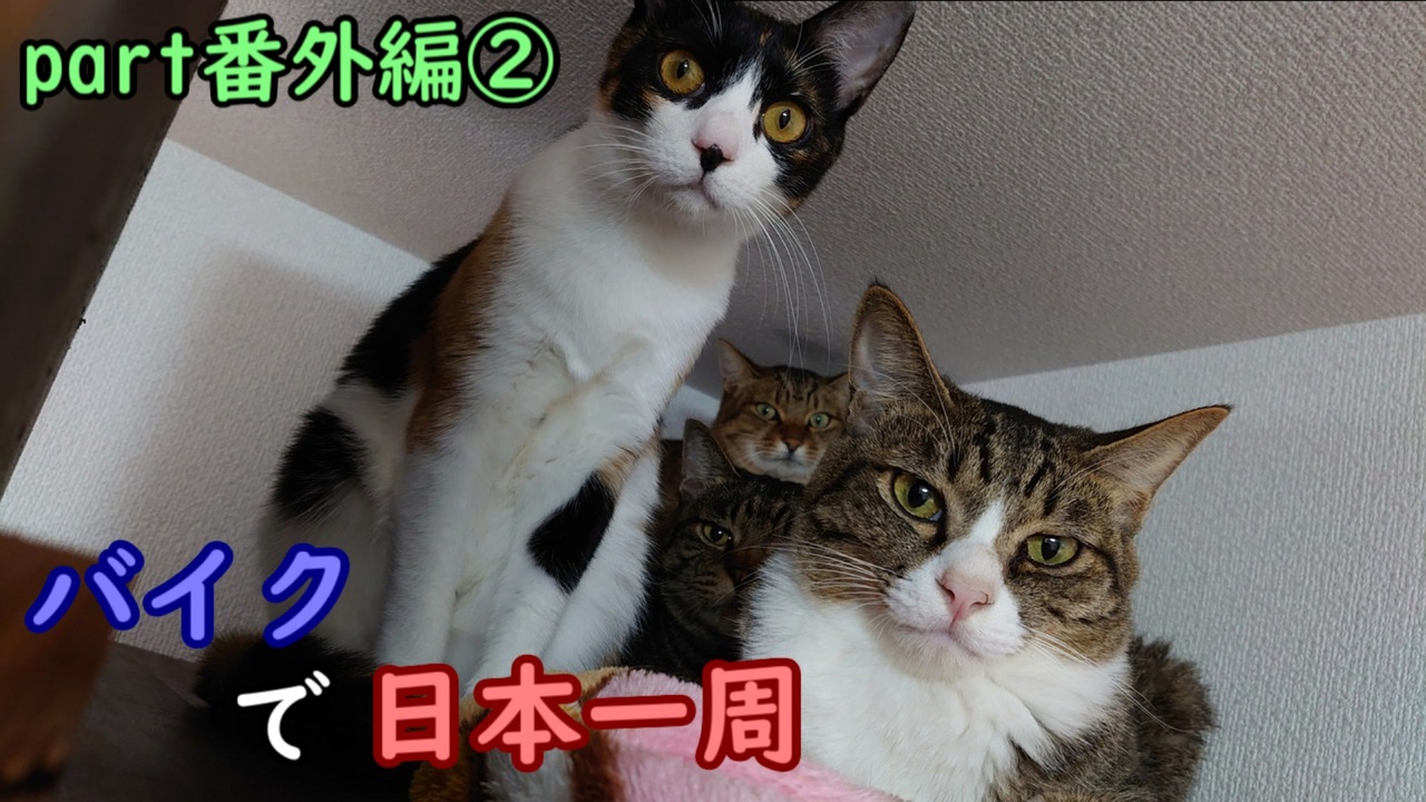 ※タイトルにバイクの言葉は行ってますが、バイクは一切登場しません。<br>故あって動画投稿遅れました。<br>魔性の猫が住まう猫カフェ「みんなのもり」死闘編です。<br><br>前 → <a href="https://www.nicovideo.jp/watch/sm41218355" class="watch">sm41218355</a><br>次 → <a href="https://www.nicovideo.jp/watch/sm41233349" class="watch">sm41233349</a><br><br>行く観光名所とかを記したブログ → <a href="https://nihonissyu-yumesuko.hatenablog.jp" target="_blank" rel="noopener nofollow">https://nihonissyu-yumesuko.hatenablog.jp</a><br><br>マイリスト→<a href="https://www.nicovideo.jp/mylist/73335067" target="_blank" rel="noopener">mylist/73335067</a><br><br>前作の日本一周動画のマイリスト→鉄道「<a href="https://www.nicovideo.jp/mylist/37605489" target="_blank" rel="noopener">mylist/37605489</a>」、徒歩「<a href="https://www.nicovideo.jp/mylist/58410823" target="_blank" rel="noopener">mylist/58410823</a>、<a href="https://www.nicovideo.jp/mylist/64359427" target="_blank" rel="noopener">mylist/64359427</a>」<br><br>ツイッター<br><a href="https://twitter.com/kotatu_travel" target="_blank" rel="noopener nofollow">https://twitter.com/kotatu_travel</a><br>