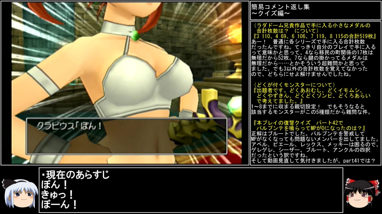 16時間をやり直して1/256を狙うか、このまま続けて1/512を狙うかだったら前者も考えたけど、おどかすの仕様に気付いたのが追加で〇〇時間掛かった第二次稼ぎ作業後だったんですよね……。<br><br>動画内で紹介している新たな追走者様(めいれいさせろは大事)<br>→<a href="https://www.youtube.com/channel/UCZEeM0KEbBKVKNmNzoAEuCQ" target="_blank" rel="noopener nofollow">https://www.youtube.com/channel/UCZEeM0KEbBKVKNmNzoAEuCQ</a><br><br>前→<a href="https://www.nicovideo.jp/watch/sm41206384" class="watch">sm41206384</a> 次→<a href="https://www.nicovideo.jp/watch/sm41244959" class="watch">sm41244959</a><br><br>YouTube版→<a href="https://youtu.be/eIreTHFNyg4" target="_blank" rel="noopener nofollow">https://youtu.be/eIreTHFNyg4</a><br><br><br>※動画の大きさが変わる方は、お手数ですが設定→画質を自動から〇pに変えると解決します。<br>※一部機種は互換機を使用してのプレイとなります。<br><br>縛りルール(不明点はシリーズのQ&Aを参照)<br>①使った武器・防具・装飾品・道具・呪文・特技・一部特殊施設(メダル王・カジノ・移民の町)・職業(3,6,7)・仲間モンスター(4,5,6,8+7の職業)は次以降のシリーズで使用禁止。<br>(NPCキャラが使用した装備や呪文を含む。売却及び錬金素材としても使用扱い)<br><br>②裏技・バグ技の禁止。<br><br>③逃走禁止&戦闘終了時は全員生存。<br><br>④レベルを上げ過ぎない。<br>ダンジョンやボスは公式ガイドブックに記載されたレベル+3まで。<br>ラスボスは全ての呪文を習得するレベル+3程度までに収める。<br><br>⑤裏ボスも規定回数、規定ターン以内に倒す。<br>(6の裏ダンジョン突入時のみ、条件を満たすため①の職業を解禁)<br><br>(おまけ)<br>宝は可能なものに限り全回収。<br>5と6は同一モンスターの仲間不可。<br>回避可能なボスも全て倒す。<br><br><br>この動画で利用している株式会社スクウェア・エニックスを代表とする共同著作者が権利を所有する著作物及びスギヤマ工房有限会社が権利を所有する楽曲の転載・配布は禁止いたします。<br>(C) ARMOR PROJECT/BIRD STUDIO/SQUARE ENIX All Rights Reserved.<br>(C) SUGIYAMA KOBO (P) SUGIYAMA KOBO<br><br>AquesTalk2ライセンスID:AQTK2WINUSR23122185<br /><br><br>❤いいねを押していただけるとモチベーションと投稿速度が上がるので宜しくお願い致します!<br><br>作者ツイッター→ <a href="https://twitter.com/nig0117" target="_blank" rel="noopener nofollow">https://twitter.com/nig0117</a><br>PIXIV FANBOX→ <a href="https://sutanokeiji.fanbox.cc/" target="_blank" rel="noopener nofollow">https://sutanokeiji.fanbox.cc/</a><br><br>( 以前はWEB小説書いてました→ <a href="https://kakuyomu.jp/works/1177354054884910267" target="_blank" rel="noopener nofollow">https://kakuyomu.jp/works/1177354054884910267</a> )