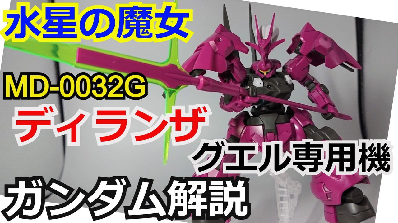 ゆっくり解説動画をご覧頂きありがとうございます。<br>水星の魔女解説動画になります<br><br>第4回 MD-0032G<br>ディランザ グエル専用機<br>ベネリットグループなどの解説になりますので<br>温かい目でご覧ください<br><br>3話以降の追加設定はディランザ解説part2にて行う予定です<br><br>第1話でガンダム・エアリアルと戦った機体<br><br>◆チャンネル登録お願いします◆<br>シュウ部屋ちゃんねる【ガンダム解説】<br><a href="https://www.youtube.com/channel/UCuCnq009aboSCCpKPdEFKcg" target="_blank" rel="noopener nofollow">https://www.youtube.com/channel/UCuCnq009aboSCCpKPdEFKcg</a><br><br>youtubeに機動戦士ガンダム宇宙世紀MS、MA解説を先行投稿中<br><br>宇宙世紀兵器解説マイリスト→<a href="https://www.nicovideo.jp/mylist/72855560" target="_blank" rel="noopener">mylist/72855560</a><br><br>最新ガンダム解説マイリスト→<a href="https://www.nicovideo.jp/mylist/71096265" target="_blank" rel="noopener">mylist/71096265</a><br><br>ご意見ご感想は毎週行っている生放送へ<br>co4031807