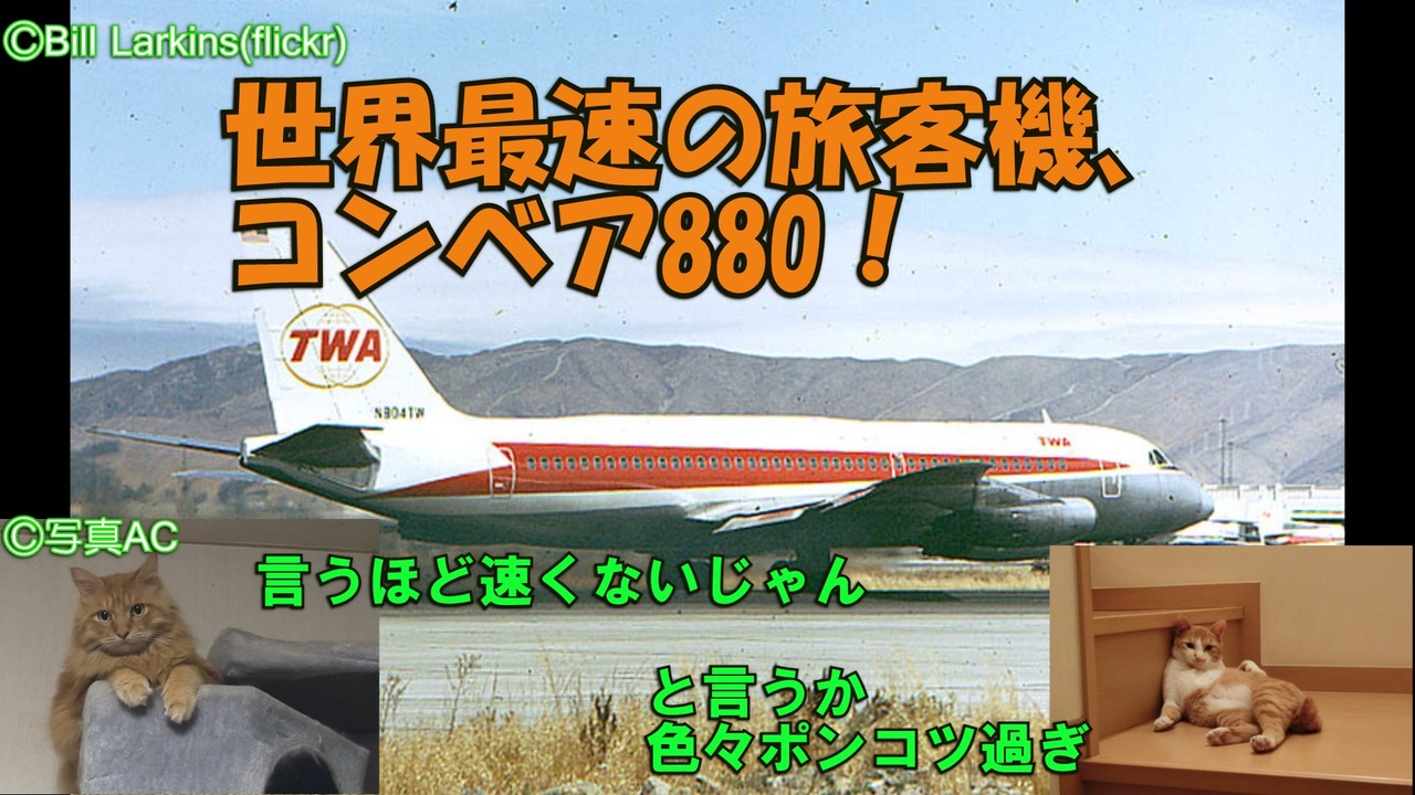 今回ご紹介するのはアメリカの航空機メーカー・コンベア初にして唯一のジェット機となったコンベア880・990型。「世界最速のジェット旅客機」を謳い文句に開発・セールスが進められましたが、わずかな差でしかない最速を目指した結果、色々なものを犠牲にしておかしくなって壮絶に売れず、遂にはコンベアの名前をも消し去ってしまった飛行機でした。詳しくは本編で。<br><br>日航のコンベア880の末路はこちら→<a href="https://www.nicovideo.jp/watch/sm41364369" class="watch">sm41364369</a><br>日航以外のコンベア880の末路はこちら→<a href="https://www.nicovideo.jp/watch/sm41404731" class="watch">sm41404731</a><br /><span style="color: #000000; font-size: 14px;">迷航空会社列伝</span><span style="color: #006699; font-size: 14px;"><a href="https://www.nicovideo.jp/mylist/24098760" target="_blank" rel="noopener">mylist/24098760</a></span><span style="color: #000000; font-size: 14px;"> 迷列車北陸編</span><span style="color: #006699; font-size: 14px;"><a href="https://www.nicovideo.jp/mylist/19084652" target="_blank" rel="noopener">mylist/19084652</a> </span><span style="color: #000000; font-size: 14px;">東海道交通戦争</span><span style="color: #006699; font-size: 14px;"><a href="https://www.nicovideo.jp/mylist/57958388" target="_blank" rel="noopener">mylist/57958388</a></span><span style="color: #000000; font-size: 14px;"> 交通機関の栄枯盛衰 </span><a href="https://www.nicovideo.jp/mylist/66898301" target="_blank" rel="noopener">mylist/66898301</a><br><span style="color: #000000; font-size: 14px;">ブログ→</span><span style="color: #006699; font-size: 14px;"><a href="http://www.meihokuriku-alps.com" target="_blank" rel="noopener nofollow">http://www.meihokuriku-alps.com</a></span><br>note→<a href="https://note.com/meihokuriku" target="_blank" rel="noopener nofollow">https://note.com/meihokuriku</a><br><span style="color: #000000; font-size: 14px;">使用BGM<br>甘茶の音楽工房様 </span><span style="color: #006699; font-size: 14px;"><a href="http://amachamusic.chagasi.com/index.html" target="_blank" rel="noopener nofollow">http://amachamusic.chagasi.com/index.html</a></span><br><span style="color: #000000; font-size: 14px;">魔王魂様 </span><span style="color: #006699; font-size: 14px;"><a href="https://maoudamashii.jokersounds.com/list/bgm5.html" target="_blank" rel="noopener nofollow">https://maoudamashii.jokersounds.com/list/bgm5.html</a></span>