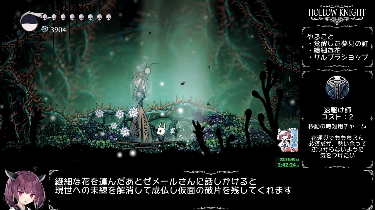 いっぱいお買い物をするパート<br><br>Hollow Knightのスピードランカテゴリー、112%+APB NMGの再走記録を東北きりたんが解説した動画です。<br>今回の記録はロードレスタイム:3:47:56、リアルタイム:4:07:44でした。<br><br>Hollow Knight steamページ<br><a href="https://store.steampowered.com/app/367520/Hollow_Knight/?l=japanese" target="_blank" rel="noopener nofollow">https://store.steampowered.com/app/367520/Hollow_Knight/?l=japanese</a><br><br>---------------------参考にさせていただいた動画など--------------------------<br>HollowKnight_JP_discordサーバー<br><a href="https://twitter.com/un_yo_san/status/1456597988944408577" target="_blank" rel="noopener nofollow">https://twitter.com/un_yo_san/status/1456597988944408577</a><br>英語版wiki<br><a href="https://hollowknight.fandom.com/wiki/Hollow_Knight_Wiki" target="_blank" rel="noopener nofollow">https://hollowknight.fandom.com/wiki/Hollow_Knight_Wiki</a><br>日本語版wiki<br><a href="https://wikiwiki.jp/hollowknight/" target="_blank" rel="noopener nofollow">https://wikiwiki.jp/hollowknight/</a><br>【Hollow Knight㊵】葵ちゃんときりたんの日常【VOICEROID実況プレイ】<br><a href="https://www.nicovideo.jp/watch/sm39675623" class="watch">sm39675623</a><br>----------------------------------------------------------------------------------<br>無編集版<br><a href="https://www.youtube.com/watch?v=CG7GtTWUulY" target="_blank" rel="noopener nofollow">https://www.youtube.com/watch?v=CG7GtTWUulY</a><br><br>前シリーズはこちら:<a href="https://www.nicovideo.jp/series/289523" target="_blank" rel="noopener">series/289523</a><br><br>前:<a href="https://www.nicovideo.jp/watch/sm41196673" class="watch">sm41196673</a><br>次:<a href="https://www.nicovideo.jp/watch/sm41265337" class="watch">sm41265337</a><br><br>※盛大に編集ミスをしていたので動画を修正しました。<br><br><a target="_blank" href="https://qa.nicovideo.jp/faq/show/19424?site_domain=default" style="font-size: 13px;color: #657586; text-decoration: underline; line-height: 1.4">この動画は投稿者によって修正されました</a>