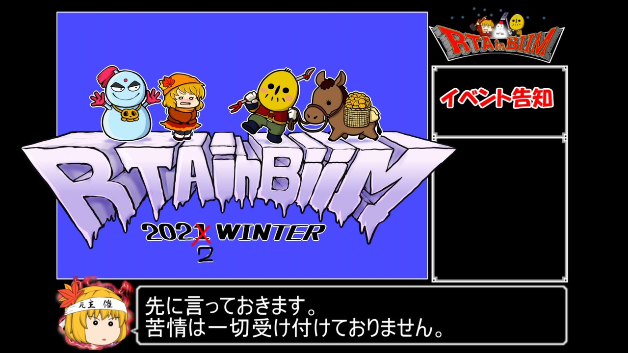 ヌッ!<br>お陰様で今年も開催出来そうです。<br><br>開催概要HP:<a href="https://www.rtainbiim.cyou/2022/" target="_blank" rel="noopener nofollow">https://www.rtainbiim.cyou/2022/</a><br>応募フォーム(11/12〆切):<a href="https://docs.google.com/forms/d/e/1FAIpQLScHk6RCXtxXH4TtIpUajvuGrjoQ9QGm70-cVqdLoiCgiLrwvw/viewform" target="_blank" rel="noopener nofollow">https://docs.google.com/forms/d/e/1FAIpQLScHk6RCXtxXH4TtIpUajvuGrjoQ9QGm70-cVqdLoiCgiLrwvw/viewform</a><br><br>Twitter:<a href="https://twitter.com/BiimRta" target="_blank" rel="noopener nofollow">https://twitter.com/BiimRta</a><br><br>大会コミュ:<a href="https://com.nicovideo.jp/community/co5258217" target="_blank" rel="noopener nofollow">https://com.nicovideo.jp/community/co5258217</a><br>Discord:<a href="https://discord.com/invite/S5nNR8s6Zq" target="_blank" rel="noopener nofollow">https://discord.com/invite/S5nNR8s6Zq</a>