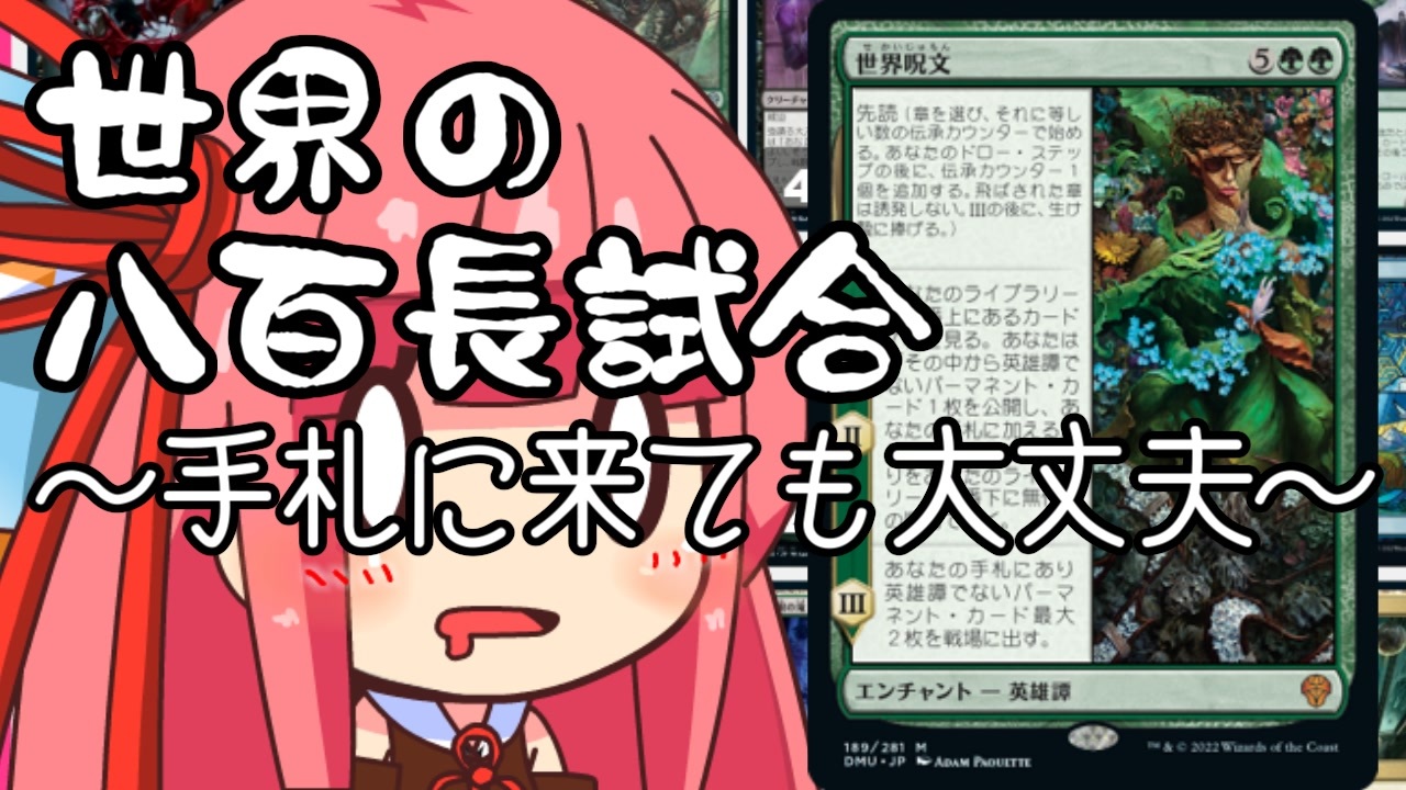 団結のドミナリアぁ!千六百長試合とかいう言葉好き。<br>クソデッカーです。<br><br><br>BGM:shiso<br> 錬金術師の錆びた釜<br><br>マイリスト:<a href="https://www.nicovideo.jp/mylist/70716776" target="_blank" rel="noopener">mylist/70716776</a><br>前回:<a href="https://www.nicovideo.jp/watch/sm41248427" class="watch">sm41248427</a><br>次回:<a href="https://www.nicovideo.jp/watch/sm41267983" class="watch">sm41267983</a><br><br>Twitter:@siki_sikigamin<br>(クソデッカー茜ちゃんでよくエゴサしてます。)<br><br><br>デッキ<br>2 冥府の掌握 (MID) 107<br>4 調和の織り手 (NEO) 213<br>1 羅利骨灰 (DMU) 183<br>4 強請る大入道 (SNC) 95<br>4 八百長試合 (SNC) 145<br>3 装飾庭園を踏み歩くもの (SNC) 160<br>4 溜め池のクラーケン (SNC) 56<br>3 ギックスの残虐 (DMU) 87<br>2 壮麗な日の出 (VOW) 200<br>3 船砕きの怪物 (VOW) 63<br>4 世界呪文 (DMU) 189<br>2 巨大な空亀 (NEO) 216<br>2 島 (DMU) 278<br>2 沼 (DMU) 279<br>2 森 (DMU) 281<br>4 難破船の湿地 (MID) 267<br>4 死天狗茸の林間地 (VOW) 261<br>4 夢根の滝 (VOW) 262<br>2 ヤヴィマヤの沿岸 (DMU) 261<br>2 ラフィーンの塔 (SNC) 254<br>2 ジアトラの試練場 (SNC) 261