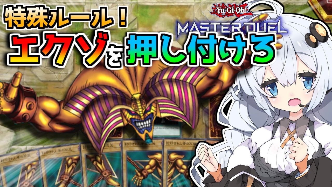 ー現代遊戯王が体感できる神ゲー「遊戯王マスターデュエル」の実況動画ー<br>☆三幻神を束ねることで召喚できる「光の創造神ホルアクティ」での先行ワンキルを求め続ける紲星あかりがyu-gi-oh Masterduelにもやってきた!!!<br>LIVE2Dで胸が弾むよ(*'▽')<br><br>★5枚のカードを揃えると勝利の「封印されしエクゾディア」。本来なら勝てるのに今回は揃えると負ける!?特殊レギュレーション「エクゾディアを揃えると負けデュエル」で遊んでみるとゲームのメタが次々見つかり意外と奥が深い!?アンリミテッドレギュの禁止カードありだから「強欲な壺」も大活躍!コイントスでギャンブルデッキも可能!<br><br>前➡<a href="https://www.nicovideo.jp/watch/sm41228157" class="watch">sm41228157</a><br>次➡<a href="https://www.nicovideo.jp/watch/sm41284209" class="watch">sm41284209</a><br>マイリスト→<a href="https://www.nicovideo.jp/mylist/68429101" target="_blank" rel="noopener">mylist/68429101</a><br><br>☆素材元様☆<br>立ち絵<br>紲星あかり:みるくぱんだ 様<br>ついなちゃん:akihiyo 様<br>結月ゆかり:四ラユメ 様<br>BGM<br>夏夜-kaya-:煉獄庭園 様<br /><br><span style="color: #434343; font-size: 10px;">ついったー:<a href="https://twitter.com/shiki_yokosuka" target="_blank" rel="noopener nofollow">https://twitter.com/shiki_yokosuka</a></span>