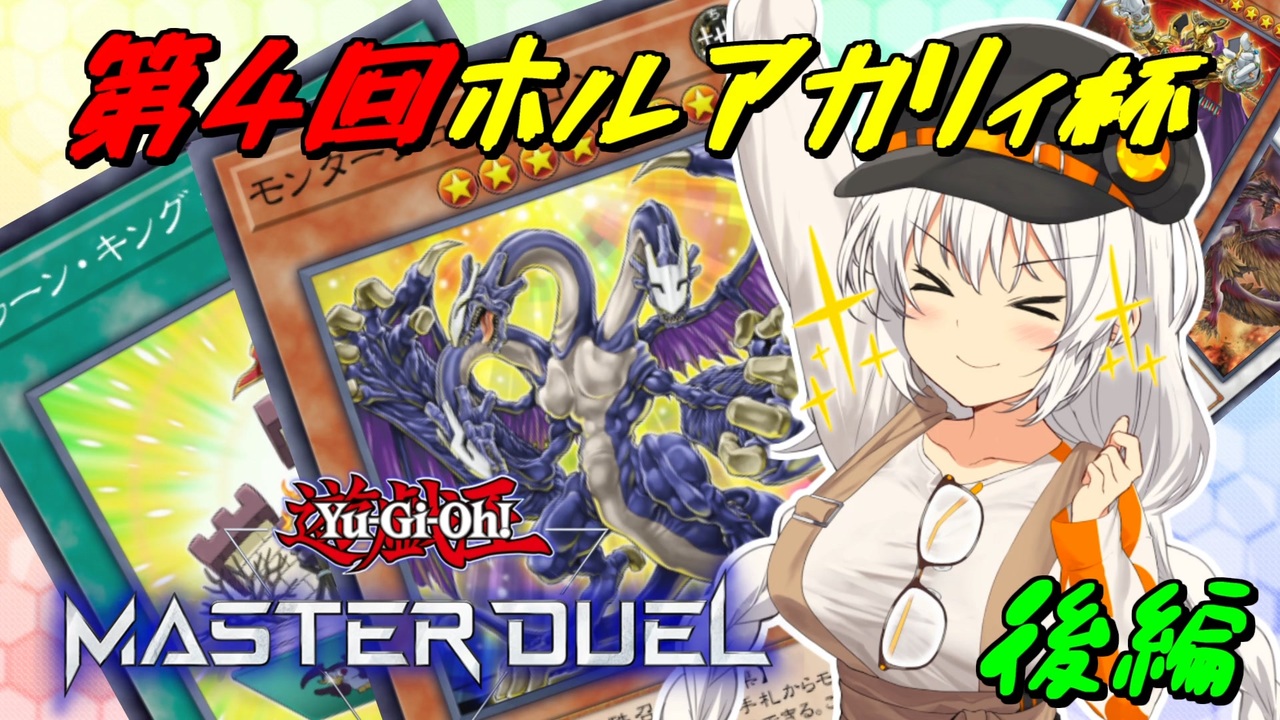 第4回ホルアカリィ杯の続きです<br><span style="color: #ff0000; font-size: 16px;"><strong>※対戦相手の批判等は控えて下さい。</strong></span><br><br>対戦相手<br>一回戦:<a href="https://www.nicovideo.jp/user/31053700" target="_blank" rel="noopener">user/31053700</a>(<a href="https://www.nicovideo.jp/watch/sm41099108" class="watch">sm41099108</a>)<br>二回戦:<a href="https://www.nicovideo.jp/user/1659101" target="_blank" rel="noopener">user/1659101</a> (<a href="https://www.nicovideo.jp/watch/sm41528373" class="watch">sm41528373</a>)<br><br>いつものマスターデュエルシリーズ<br><a href="https://www.nicovideo.jp/mylist/73044143" target="_blank" rel="noopener">mylist/73044143</a><br><br><a target="_blank" href="https://qa.nicovideo.jp/faq/show/19424?site_domain=default" style="font-size: 13px;color: #657586; text-decoration: underline; line-height: 1.4">この動画は投稿者によって修正されました</a>