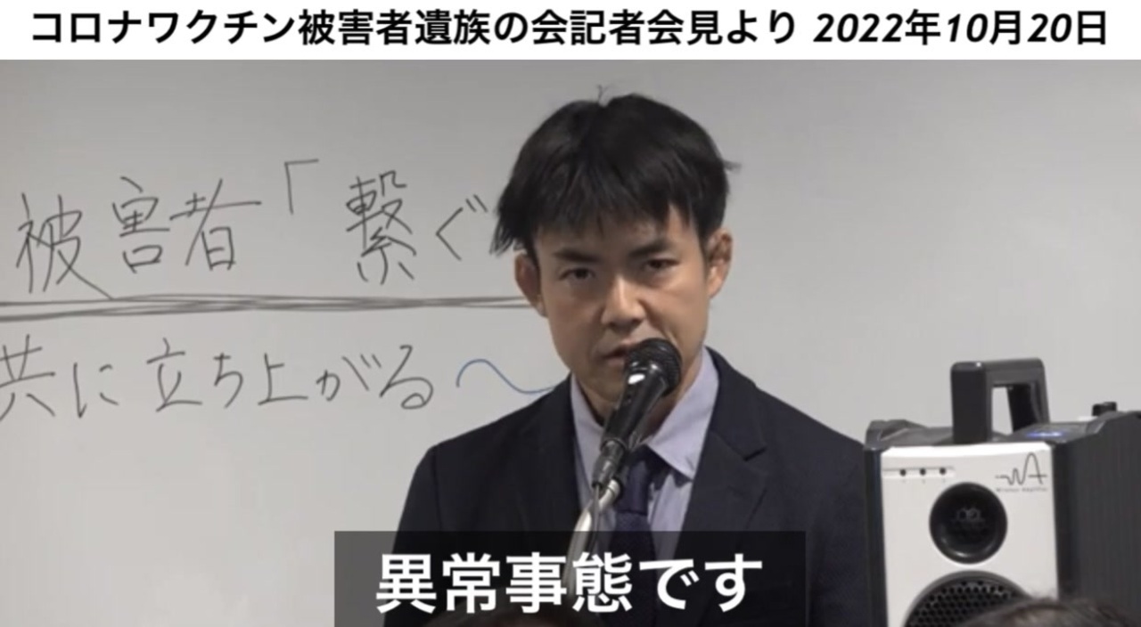 21日現在、地方局1社と地方紙1社しか報じていない。<br><br>「ワクチンが原因で亡くなったと国に必ず認めてもらいたい…」新型コロナワクチン接種後に亡くなった人の遺族12人が遺族会結成 集団訴訟へ<br>CBCテレビ 2022年10月20日<br><a href="https://newsdig.tbs.co.jp/articles/-/183789?display=1" target="_blank" rel="noopener nofollow">https://newsdig.tbs.co.jp/articles/-/183789?display=1</a><br><br>遺族救済へ 会結成 ワクチン接種後死亡で弁護士ら<br>静岡新聞 2022年10月20日<br><a href="https://www.at-s.com/sp/news/article/shizuoka/1139466.html" target="_blank" rel="noopener nofollow">https://www.at-s.com/sp/news/article/shizuoka/1139466.html</a><br><br>キノシタ薬品ウェブサイト<br><a href="https://www.kinoshitayakuhin.com/" target="_blank" rel="noopener nofollow">https://www.kinoshitayakuhin.com/</a><br><br>キノシタ薬品のTwitter<br><a href="https://twitter.com/kinoshitayakuhi" target="_blank" rel="noopener nofollow">https://twitter.com/kinoshitayakuhi</a><br><br>キノシタ薬品ニコニコ動画ちゃんねる<br><a href="https://sp.nicovideo.jp/user/122916947" target="_blank" rel="noopener nofollow">https://sp.nicovideo.jp/user/122916947</a><br><br>キノシタ薬品YouTube新チャンネル<br><a href="https://youtube.com/channel/UCxz1LbyPU9kYjA9vZXlqKJQ" target="_blank" rel="noopener nofollow">https://youtube.com/channel/UCxz1LbyPU9kYjA9vZXlqKJQ</a><br><br>キノシタ薬品YouTube旧チャンネル<br><a href="https://youtube.com/channel/UCHbI2z1pGMOI6BW7N8_CVFw" target="_blank" rel="noopener nofollow">https://youtube.com/channel/UCHbI2z1pGMOI6BW7N8_CVFw</a><br><br>キノシタ薬品のInstagram<br><a href="https://www.instagram.com/kinoshitayakuhin" target="_blank" rel="noopener nofollow">https://www.instagram.com/kinoshitayakuhin</a>