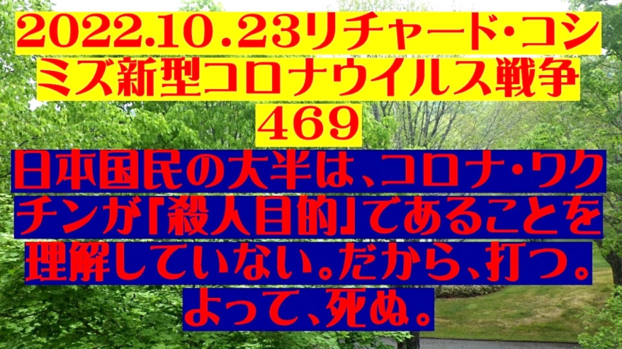 <span style="color: #cc4125;"><strong>「 テーマ:新型コロナウイルス戦争 469 」</strong></span><br><br><span style="color: #ff0000;"><strong>「 日本国民の大半は、コロナ・ワクチンが『 殺人目的 』であることを理解していない。<br> だから、ワクチンを打つ。よって、死ぬ! 」</strong></span><br><br><strong>*「フォロー」・「ニコニ広告」・「いいね!」・「情報拡散」等、ご協力下さい。 リチャード・コシミズ</strong><br><br><span style="color: #38761d;">◆</span><span style="color: #38761d;"><strong>リチャード・コシミズ 公式 ブログ</strong></span><br> <a href="https://richard-koshimizu.jimdosite.com/" target="_blank" rel="noopener nofollow">https://richard-koshimizu.jimdosite.com/</a><br><br><span style="color: #38761d;">◆</span><span style="color: #38761d;"><strong>リチャード・コシミズ 公式 ホームページ<br> </strong></span><a href="http://richardkoshimizu.boo.jp/" target="_blank" rel="noopener nofollow">http://richardkoshimizu.boo.jp/</a><br><br><span style="color: #38761d;">◆</span><span style="color: #38761d;"><strong>リチャード・コシミズ オンライン ショップ</strong></span><br> <a href="https://rkonline.shop-pro.jp/" target="_blank" rel="noopener nofollow">https://rkonline.shop-pro.jp/</a><br><br><span style="color: #38761d;">◆</span><span style="color: #38761d;"><strong>リチャード・コシミズ 講演会 公式 動画ギャラリー</strong></span><br> <a href="http://www.t-sskk.com/richardkoshimizu/video-gallery/index.html" target="_blank" rel="noopener nofollow">http://www.t-sskk.com/richardkoshimizu/video-gallery/index.html</a><br>