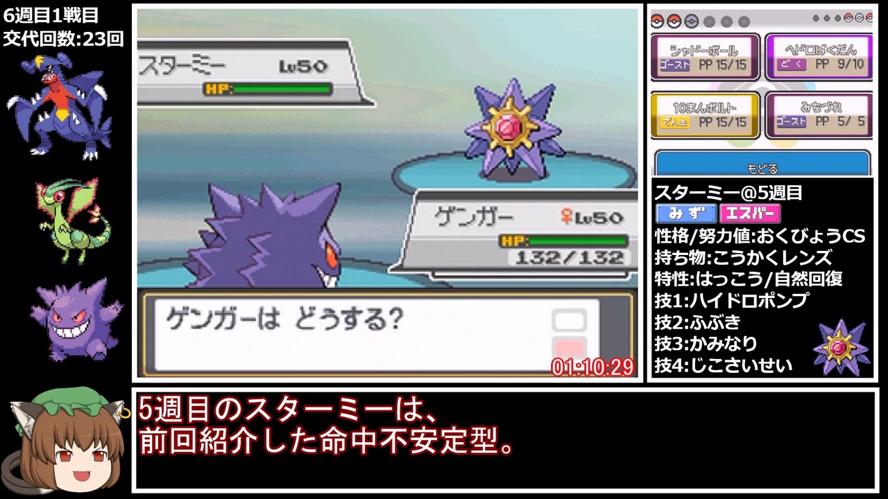 ほほぅ わたしと また ポケモンしょうぶを してみたい?<br>いいですとも!<br>アサギのとうだいで まっておるよー!<br><br>前:<a href="https://www.nicovideo.jp/watch/sm41263073" class="watch">sm41263073</a><br>次:<a href="https://www.nicovideo.jp/watch/sm41281974" class="watch">sm41281974</a><br><br>計測区間<br>・タイマースタート:0勝状態でバトルファクトリーの受付に話しかけた瞬間<br>・タイマーストップ:49戦目(金ネジキ)で3体目を倒した瞬間<br><br>レギュレーションなど<br>・使用機種:3DS(偽トロ)<br>・シングルバトル/レベル50<br>・乱数調整禁止(ゲームリセット/ペラップ鳴かせる等)<br>・QL/QS/任意コード/チート等禁止<br><br>無修正版:<a href="https://www.youtube.com/watch?v=LCcNv51AguA" target="_blank" rel="noopener nofollow">https://www.youtube.com/watch?v=LCcNv51AguA</a><br><br>RTAまとめ:<a href="https://www.nicovideo.jp/mylist/56827667" target="_blank" rel="noopener">mylist/56827667</a><br>更新報告:<a href="https://twitter.com/yamabukiginu" target="_blank" rel="noopener nofollow">https://twitter.com/yamabukiginu</a><br><br>追記<br><s>編集ガバが多すぎるので、修正中です</s><br>→上書き修正終了(22時41分)<br><br><a target="_blank" href="https://qa.nicovideo.jp/faq/show/19424?site_domain=default" style="font-size: 13px;color: #657586; text-decoration: underline; line-height: 1.4">この動画は投稿者によって修正されました</a>