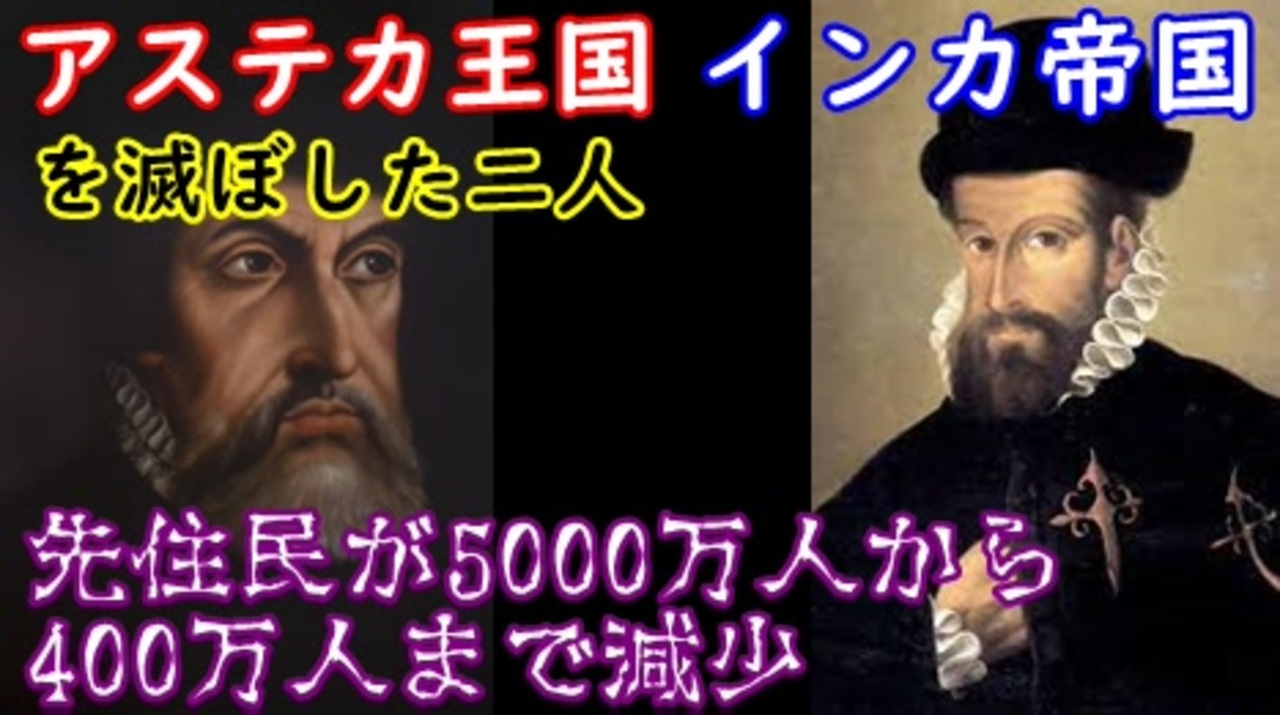 アステカ王国とインカ帝国を滅ぼした二人の解説です。<br>色々調べてたら思ってたイメージとは結構違くてびっくりしました。<br>世の中そんなことばっかりですね。<br><br>あと動画時間をいつもより短めにしたのと、いろいろごちゃついてた黒歴史解説シリーズ(事件やら発明やら)を"黒歴史列伝シリーズ"の一括りにすることにしました。<br>あくまでまだお試しの段階なので感想とかあれば教えてくださいな!<br>ニコニコでは関係ないのですが、YouTubeの方で収益剥奪されすぎて参っちゃったのでもう背景ゲーム画面制度で固定することにしました。なんやかんやこの方法が一番賛同されてた気がする。<br><br>part2→<a href="https://www.nicovideo.jp/watch/sm41505154" class="watch">sm41505154</a><br><br>僕のツイッター→<a href="https://twitter.com/lg3merasikyou" target="_blank" rel="noopener nofollow">https://twitter.com/lg3merasikyou</a><br>黒歴史解説動画集→<a href="https://www.nicovideo.jp/series/273916" target="_blank" rel="noopener">series/273916</a><br>part1集→<a href="https://www.nicovideo.jp/mylist/53269590" target="_blank" rel="noopener">mylist/53269590</a>