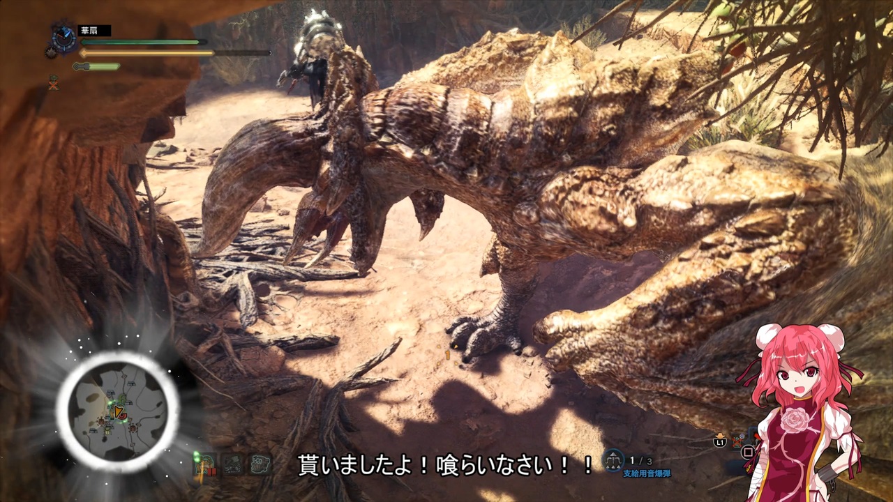 第十六話目狩猟開始です。<br><br>パトラッシュ「布都は連れが難しくてソロ登場も微妙だったんじゃないのか?」<br>うp主 「まぁ、待て。これには深いワケがある」<br>パトラッシュ「なんだ?」<br>うp主 「某希望と絶望のMUGEN動画を見てたらガワが布都ちゃんのキャラが居てな」<br>パトラッシュ「で?」<br>うp主 「太ももを見ていたら我慢できなくなった」<br>パトラッシュ「そうか。右手からマハラギバリオン、左手からマハブフバリオン……」<br>うp主 「おい待て!作品が違う!ってか、その口上はロト紋……!!」<br>パトラッシュ「似た様なもんだ!!メド□ーア!!!」<br>うp主 「タ"イの大冒険アニメ完結おめでとうございます!!!!」<br><br>まぁ、割と本当にそんな下らない理由で登場させました。<br>※一部名称が変になってますが検索妨害対応の為ご了承ください。<br><br>次><a href="https://www.nicovideo.jp/watch/sm41292542" class="watch">sm41292542</a><br>前><a href="https://www.nicovideo.jp/watch/sm41292449" class="watch">sm41292449</a><br>マイリスト><a href="https://www.nicovideo.jp/mylist/73584942" target="_blank" rel="noopener">mylist/73584942</a><br>過去作><a href="https://www.nicovideo.jp/mylist/48033638" target="_blank" rel="noopener">mylist/48033638</a>
