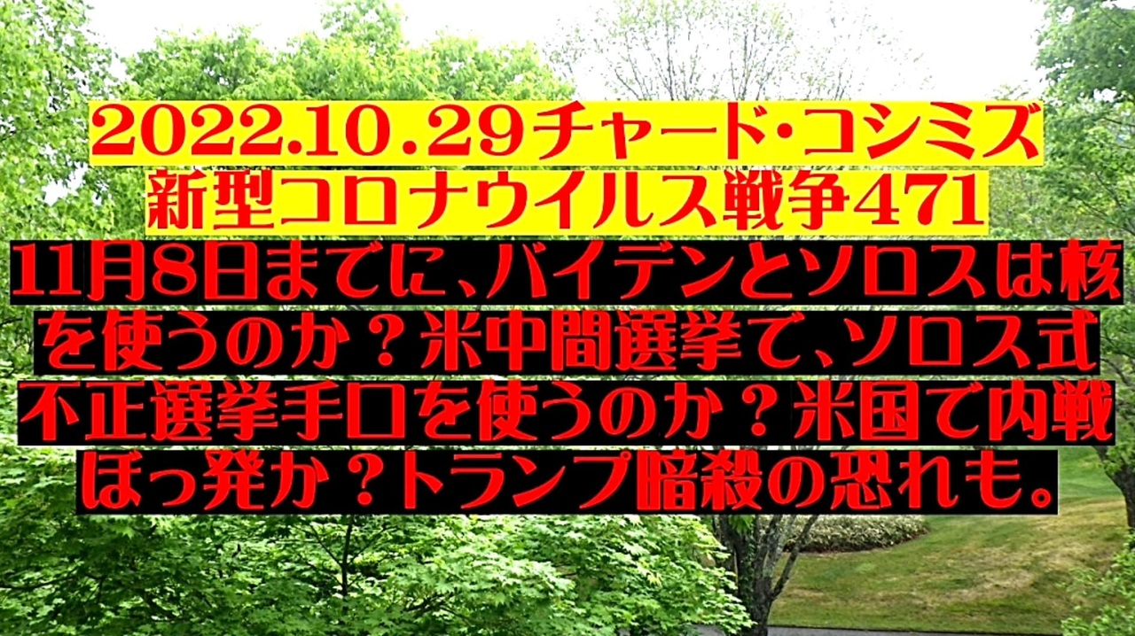 <span style="color: #cc4125;"><strong>「 テーマ:新型コロナウイルス戦争 471 」</strong></span><br><br><span style="color: #ff0000;"><strong>「『 11月8日までに、ジョー・バイデンとジョージ・ソロスは核を使うのか? 』・『 米中間選挙で、<br> ジョージ・ソロス式不正選挙手口を使うのか? 』・『 米国で内戦ぼっ発か? 』・『 ドナルド・トラ<br> ンプ暗殺の恐れも 』」</strong></span><br><br><span style="color: #0000ff;"><strong>「『 イベルメクチン・アビガン・その他コロナ対策についてのご意見 』をお寄せ下さい! 」</strong></span><br><br> <strong>◐ E-mail:richardkoshimizu@gmail.com<br><br>*「フォロー」・「ニコニ広告」・「いいね!」・「情報拡散」等、ご協力下さい。 リチャード・コシミズ</strong><br><br><span style="color: #38761d;">◆</span><span style="color: #38761d;"><strong>リチャード・コシミズ 公式 ブログ</strong></span><br> <a href="https://richard-koshimizu.jimdosite.com/" target="_blank" rel="noopener nofollow">https://richard-koshimizu.jimdosite.com/</a><br><br><span style="color: #38761d;">◆</span><span style="color: #38761d;"><strong>リチャード・コシミズ 公式 ホームページ<br> </strong></span><a href="http://richardkoshimizu.boo.jp/" target="_blank" rel="noopener nofollow">http://richardkoshimizu.boo.jp/</a><br><br><span style="color: #38761d;">◆</span><span style="color: #38761d;"><strong>リチャード・コシミズ オンライン ショップ</strong></span><br> <a href="https://rkonline.shop-pro.jp/" target="_blank" rel="noopener nofollow">https://rkonline.shop-pro.jp/</a><br><br><span style="color: #38761d;">◆</span><span style="color: #38761d;"><strong>リチャード・コシミズ 講演会 公式 動画ギャラリー</strong></span><br> <a href="http://www.t-sskk.com/richardkoshimizu/video-gallery/index.html" target="_blank" rel="noopener nofollow">http://www.t-sskk.com/richardkoshimizu/video-gallery/index.html</a><br>