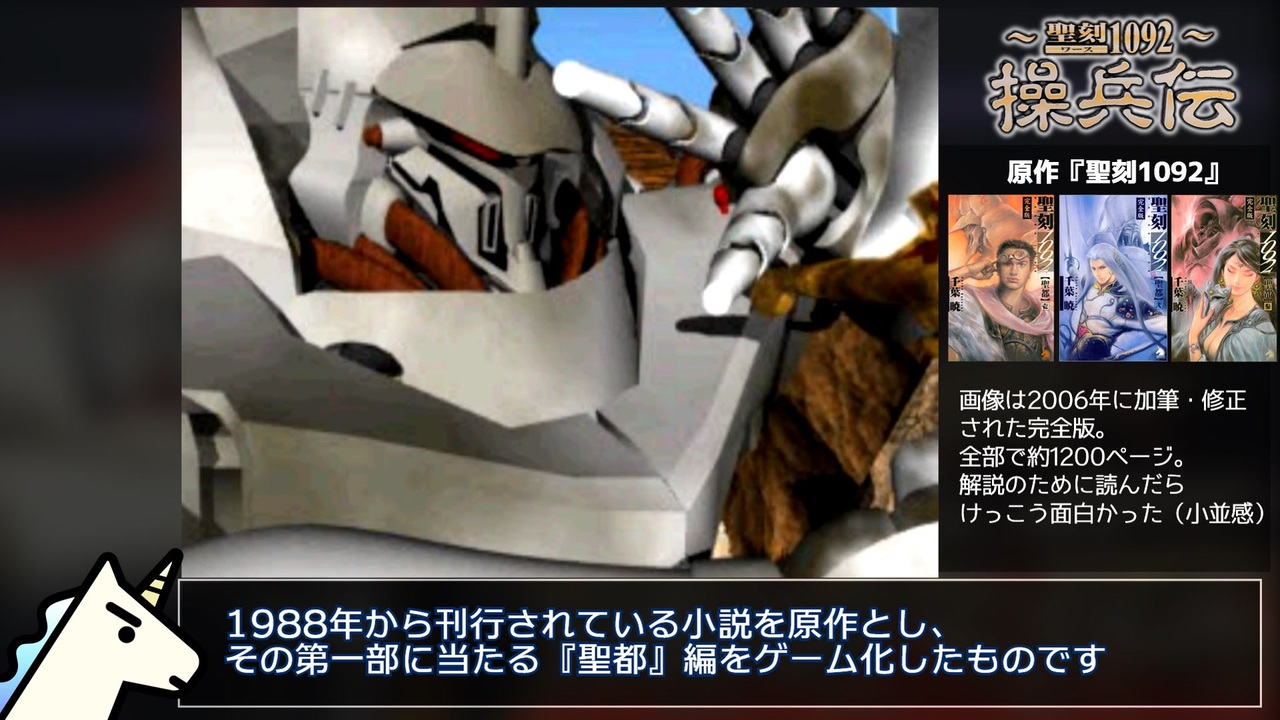 プレイステーションのRTAゆっくり解説、初投稿です。<br><br>第6弾は1997年発売のプレイステーションソフト『聖刻1092~操兵伝~』です。<br>巷で言われているほど仮面システムは悪くありません。むしろ良くできてます。<br>ただ、あまりにも説明不足すぎるんだよなぁ……。<br><br>サムネが自撮りみたいだと思った(小並感)<br>倍速中の足音うるさかったら再調整するのでコメントオナシャス!<br><br>前作【メガドライブ/XDR(X-Dazedly-Ray)】→<a href="https://www.nicovideo.jp/watch/sm41179857" class="watch">sm41179857</a><br>part.2→<a href="https://www.nicovideo.jp/watch/sm41397664" class="watch">sm41397664</a><br><br>走ったRTAのpart.1まとめ→<a href="https://www.nicovideo.jp/mylist/73222388" target="_blank" rel="noopener">mylist/73222388</a><br>RTA全部まとめ→<a href="https://www.nicovideo.jp/mylist/72786007" target="_blank" rel="noopener">mylist/72786007</a><br><br><u>▽レギュレーション</u><br>計測開始:キャラクター選択画面で『はい』を選択した瞬間<br>計測終了:ラスボスの『ハイダル・アナンガ』に最後のダメージ表記が出た瞬間<br><br><u>▽訂正</u><br>左枠に『銅色』の聖刻石を載せ忘れ……。育成する数は6個です。<br><br>*広告者様の名前ですが、文字数の制限に達してしまったので、次の動画の最後に掲載する形に切り替えます。<br>本当にたくさんの広告、ありがとうございます!<br><br>*使用ソフト&素材<br>冒頭のチャイム→魔王魂様<a href="https://maou.audio/" target="_blank" rel="noopener nofollow">https://maou.audio/</a><br>ダンジョンマップ→『方眼紙マッピング』<a href="https://graphpaper-news.blogspot.com/" target="_blank" rel="noopener nofollow">https://graphpaper-news.blogspot.com/</a><br><br>*エミュレーターを使用しています。<br>ソフトの画像はTwitter→ @Nagisa381rta で公開しています。<br><br>*原作のあるゲームなので、この動画はクリエイター奨励プログラムには登録しません(ギフトも不可にしています)<br><br><br><a target="_blank" href="https://qa.nicovideo.jp/faq/show/19424?site_domain=default" style="font-size: 13px;color: #657586; text-decoration: underline; line-height: 1.4">この動画は投稿者によって修正されました</a>