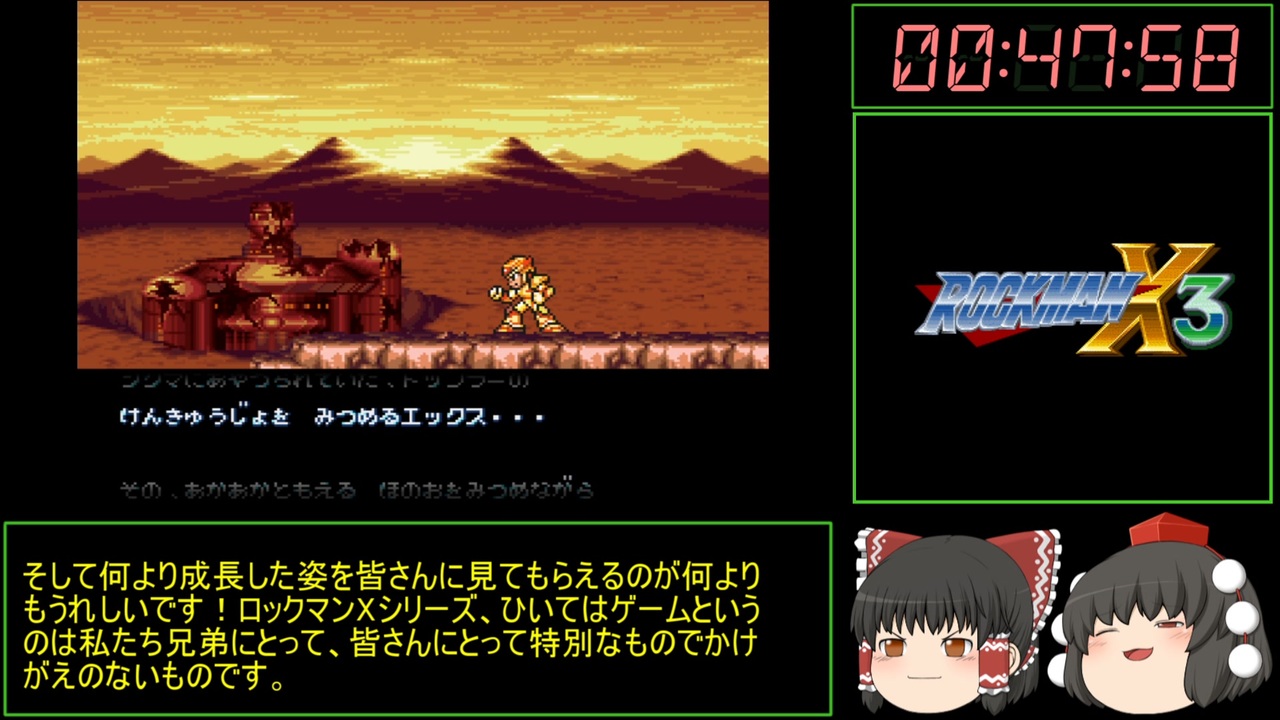 最後まで見てくれてありがとナス!楽しくてやりがいがあるRTAで本当にやってよかったぜ、これからもロックマンX大好き兄弟をよろしくお願いします!<br>part2 なるべく早くに!<br>part1 <a href="https://www.nicovideo.jp/watch/sm41200659" class="watch">sm41200659</a><br><br>YouTube版 <a href="https://www.youtube.com/watch?v=3ZpVAgmr5lo" target="_blank" rel="noopener nofollow">https://www.youtube.com/watch?v=3ZpVAgmr5lo</a><br>前回のロックマンX3 100%RTA <a href="https://www.nicovideo.jp/watch/sm32112869" class="watch">sm32112869</a><br><br>