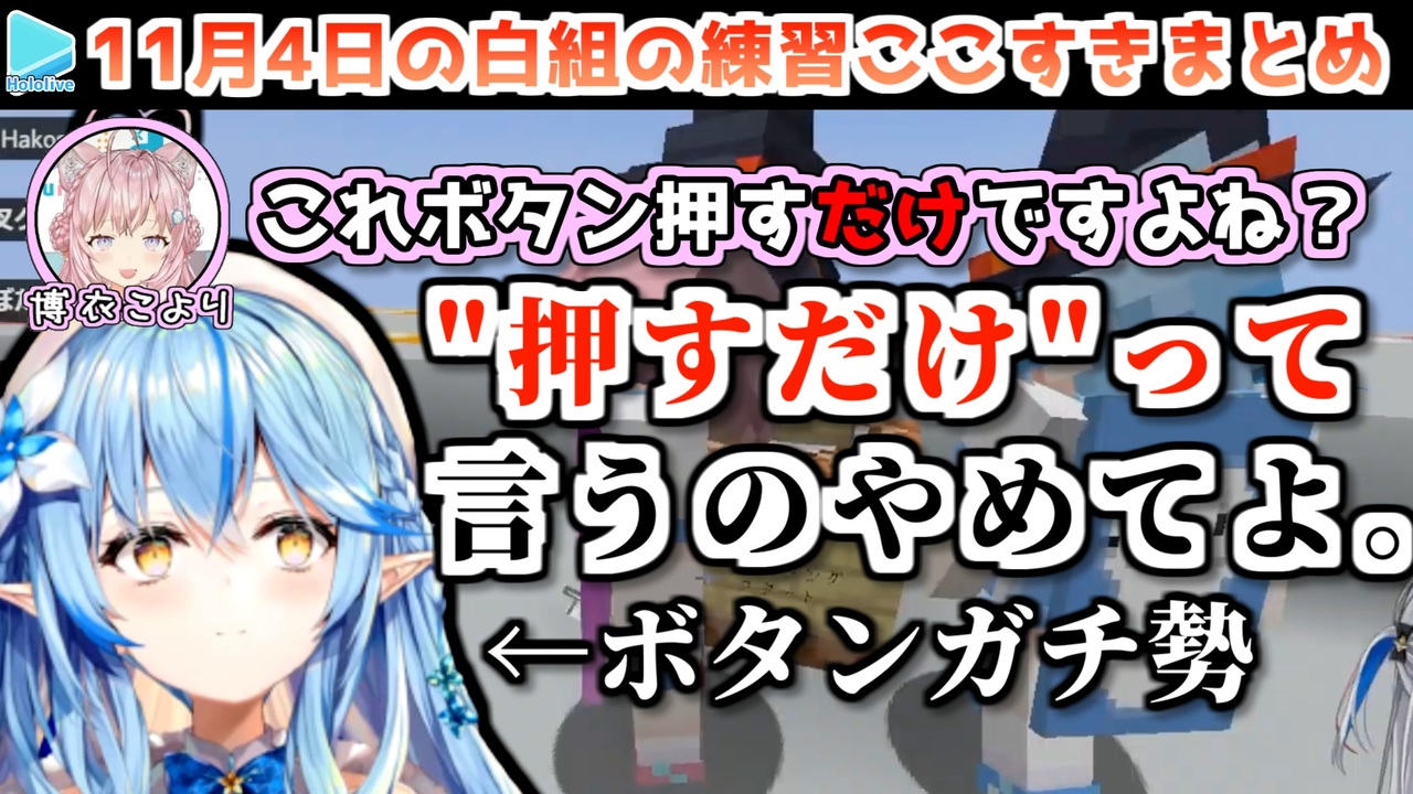 ボタンをなめるな<br><br>元動画様はこちら<br>【Minecraft】運動会に向けて練習しようかな?【#ときのそら生放送 】<br><a href="https://youtu.be/WyevFBB-cpc" target="_blank" rel="noopener nofollow">https://youtu.be/WyevFBB-cpc</a><br><br>【Minecraft】白組で練習!ズームカメラMOD入れたぞ!!【天音かなた/ホロライブ】<br><a href="https://youtu.be/26cNq-_8NIY" target="_blank" rel="noopener nofollow">https://youtu.be/26cNq-_8NIY</a><br><br>【Minecraft】白組!ホロライブ大運動会に向けての練習会【獅白ぼたん/ホロライブ】<br><a href="https://youtu.be/lw2jr9CNeQc" target="_blank" rel="noopener nofollow">https://youtu.be/lw2jr9CNeQc</a><br><br>【Minecraft】ホロライブ大運動会!白組練習だよ~!!【博衣こより/ホロライブ】<br><a href="https://youtu.be/1PuG2_Fqy88" target="_blank" rel="noopener nofollow">https://youtu.be/1PuG2_Fqy88</a><br><br>【Minecraft】白組 リレー選手沙花叉クロヱ ホロライブ大運動会に向けて走ります!!【沙花叉クロヱ/ホロライブ】<br><a href="https://youtu.be/Q-TgqWzvUG4" target="_blank" rel="noopener nofollow">https://youtu.be/Q-TgqWzvUG4</a><br><br>SoraCh. ときのそらチャンネル <a href="https://t.co/YVd92xsmZA" target="_blank" rel="noopener nofollow">https://t.co/YVd92xsmZA</a><br>Aqua Ch. 湊あくあ <a href="https://t.co/JLElyrjgQe" target="_blank" rel="noopener nofollow">https://t.co/JLElyrjgQe</a><br>Miko Ch. さくらみこ <a href="https://t.co/FM8eBkuiOO" target="_blank" rel="noopener nofollow">https://t.co/FM8eBkuiOO</a><br>Marine Ch. 宝鐘マリン <a href="https://t.co/8WZjV1i70E" target="_blank" rel="noopener nofollow">https://t.co/8WZjV1i70E</a><br>Kanata Ch. 天音かなた <a href="https://t.co/rVcDJmho1o" target="_blank" rel="noopener nofollow">https://t.co/rVcDJmho1o</a><br>Lamy Ch. 雪花ラミィ <a href="https://t.co/0EoXMwVxLO" target="_blank" rel="noopener nofollow">https://t.co/0EoXMwVxLO</a><br>Botan Ch.獅白ぼたん <a href="https://t.co/IWecN1QB4o" target="_blank" rel="noopener nofollow">https://t.co/IWecN1QB4o</a><br>Koyori ch. 博衣こより - holoX - <a href="https://t.co/U4G9NUjWs5" target="_blank" rel="noopener nofollow">https://t.co/U4G9NUjWs5</a><br>Chloe ch. 沙花叉クロヱ - holoX - <a href="https://t.co/lRT0pHeshA" target="_blank" rel="noopener nofollow">https://t.co/lRT0pHeshA</a><br>Iroha ch. 風真いろは - holoX - <a href="https://t.co/3uBFLQOmau" target="_blank" rel="noopener nofollow">https://t.co/3uBFLQOmau</a><br>Hakos Baelz Ch. hololive-EN <a href="https://t.co/pyScQbHeUB" target="_blank" rel="noopener nofollow">https://t.co/pyScQbHeUB</a><br /><span style="color: #b7b7b7; font-size: 10px;">ホロライブ切り抜き/なめたけ <a href="https://t.co/CBwJLnYR2c" target="_blank" rel="noopener nofollow">https://t.co/CBwJLnYR2c</a></span>