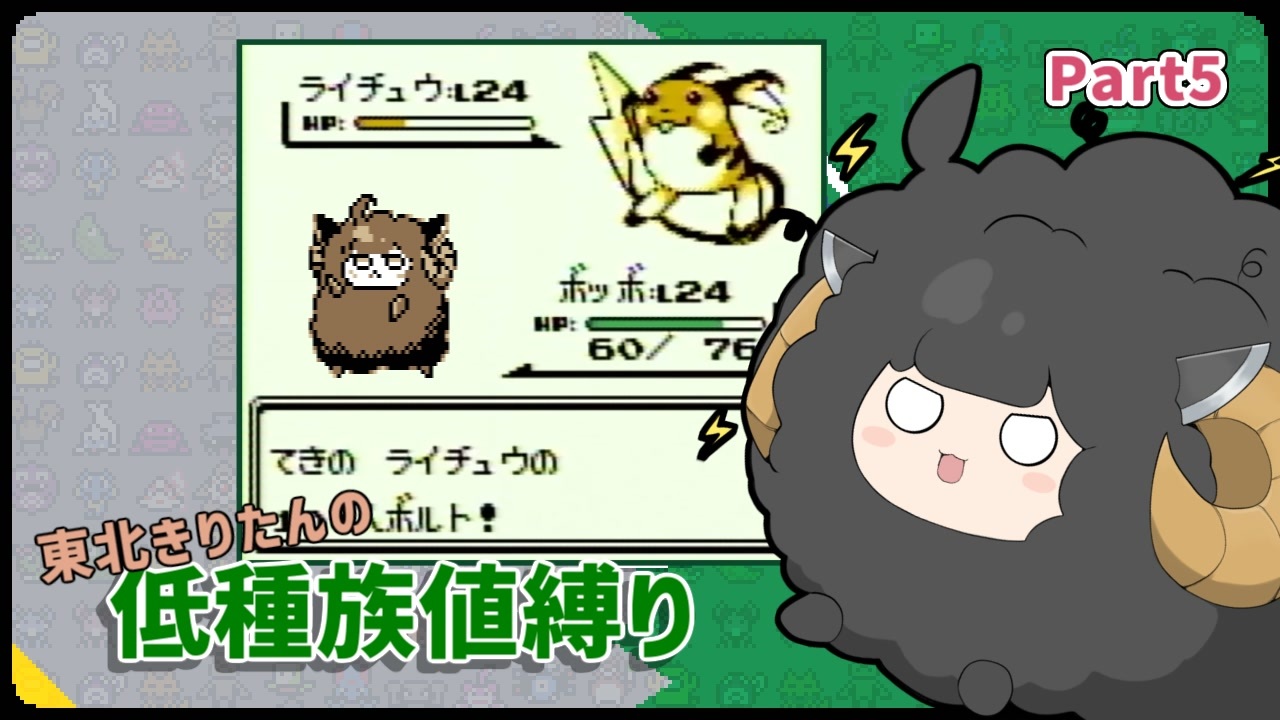 <strong>ポケモンの種族値の違いが、戦力の決定的差ではないということを…教えてやる!(教えられない)<br>低種族値のポケモンのみを使用してポケモン緑の殿堂入りを目指していきます。</strong><br><br><a href="https://www.nicovideo.jp/watch/sm41305031" class="watch">sm41305031</a>←前 次→そのうち<br><br>マイリスト(<a href="https://www.nicovideo.jp/mylist/74039248" target="_blank" rel="noopener">mylist/74039248</a>)<br><br>【プレイするゲーム】<br>・ポケットモンスター緑(GB)<br><br>【プレイ環境】<br>・スーパーファミコン周辺機器『スーパーゲームボーイ2』<br><br>【縛り内容】<br>・種族値合計300以下のポケモンのみ使用可能<br> (ただし御三家の使用は不可)<br>・初期上限Lv15<br> バッジ1つにつき上限を+5し、最大でLv55まで上げられる<br> バッジ入手までにレベル上限を超えた場合、<br> そのポケモンはバッジを入手するまで使用不可<br> Lv55の上限を超えてしまった場合<br> <span style="color: #ff0000;">そのポケモンは永久封印となります。</span><br>・ドーピングアイテムの使用禁止<br>・戦闘時に能力を上げる道具の使用禁止<br> (スピーダーやクリティカッターなど)<br>・同じポケモンの複数体同時所持不可<br>・全滅時リセット禁止<br>・意図的なバグ利用禁止<br><br><br>【動画制作】<br>・編集 AviUtl<br>・効果音 効果音ラボ様/<a href="https://soundeffect-lab.info/" target="_blank" rel="noopener nofollow">https://soundeffect-lab.info/</a><br>・立ち絵 ひつじたん立ち絵Lv2/<a href="https://seiga.nicovideo.jp/seiga/im10971772" target="_blank" rel="noopener nofollow">https://seiga.nicovideo.jp/seiga/im10971772</a><br>・フォント コーポレートロゴ たぬき油性マジック<br><br><br><a target="_blank" href="https://qa.nicovideo.jp/faq/show/19424?site_domain=default" style="font-size: 13px;color: #657586; text-decoration: underline; line-height: 1.4">この動画は投稿者によって修正されました</a>