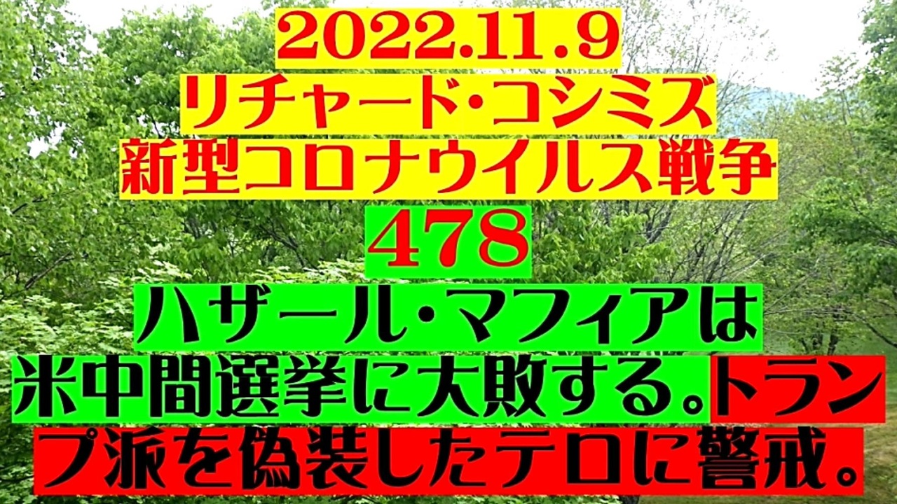 <span style="color: #cc4125;"><strong>「 テーマ:新型コロナウイルス戦争 478 」</strong></span><br><br><span style="color: #ff0000;"><strong>「『 ハザール・マフィア 』は、『 米中間選挙に大敗する 』。<br> 『 ドナルド・トランプ派を偽装したテロ 』に警戒! 」</strong></span><br><br><span style="color: #0000ff;"><strong>「『 イベルメクチン・アビガン・その他コロナ対策についてのご意見 』をお寄せ下さい! 」</strong></span><br><br> <strong>◐ E-mail:richardkoshimizu@gmail.com<br><br>*「クリエイターサポート」・「フォロー」・「ニコニ広告」等、是非ご協力下さい。 リチャード・コシミズ</strong><br><br><span style="color: #38761d;">◆</span><span style="color: #38761d;"><strong>リチャード・コシミズ 公式 ブログ</strong></span><br> <a href="https://richard-koshimizu.jimdosite.com/" target="_blank" rel="noopener nofollow">https://richard-koshimizu.jimdosite.com/</a><br><br><span style="color: #38761d;">◆</span><span style="color: #38761d;"><strong>リチャード・コシミズ 公式 ホームページ<br> </strong></span><a href="http://richardkoshimizu.boo.jp/" target="_blank" rel="noopener nofollow">http://richardkoshimizu.boo.jp/</a><br><br><span style="color: #38761d;">◆</span><span style="color: #38761d;"><strong>リチャード・コシミズ オンライン ショップ</strong></span><br> <a href="https://rkonline.shop-pro.jp/" target="_blank" rel="noopener nofollow">https://rkonline.shop-pro.jp/</a><br><br><span style="color: #38761d;">◆</span><span style="color: #38761d;"><strong>リチャード・コシミズ 講演会 公式 動画ギャラリー</strong></span><br> <a href="http://www.t-sskk.com/richardkoshimizu/video-gallery/index.html" target="_blank" rel="noopener nofollow">http://www.t-sskk.com/richardkoshimizu/video-gallery/index.html</a><br>