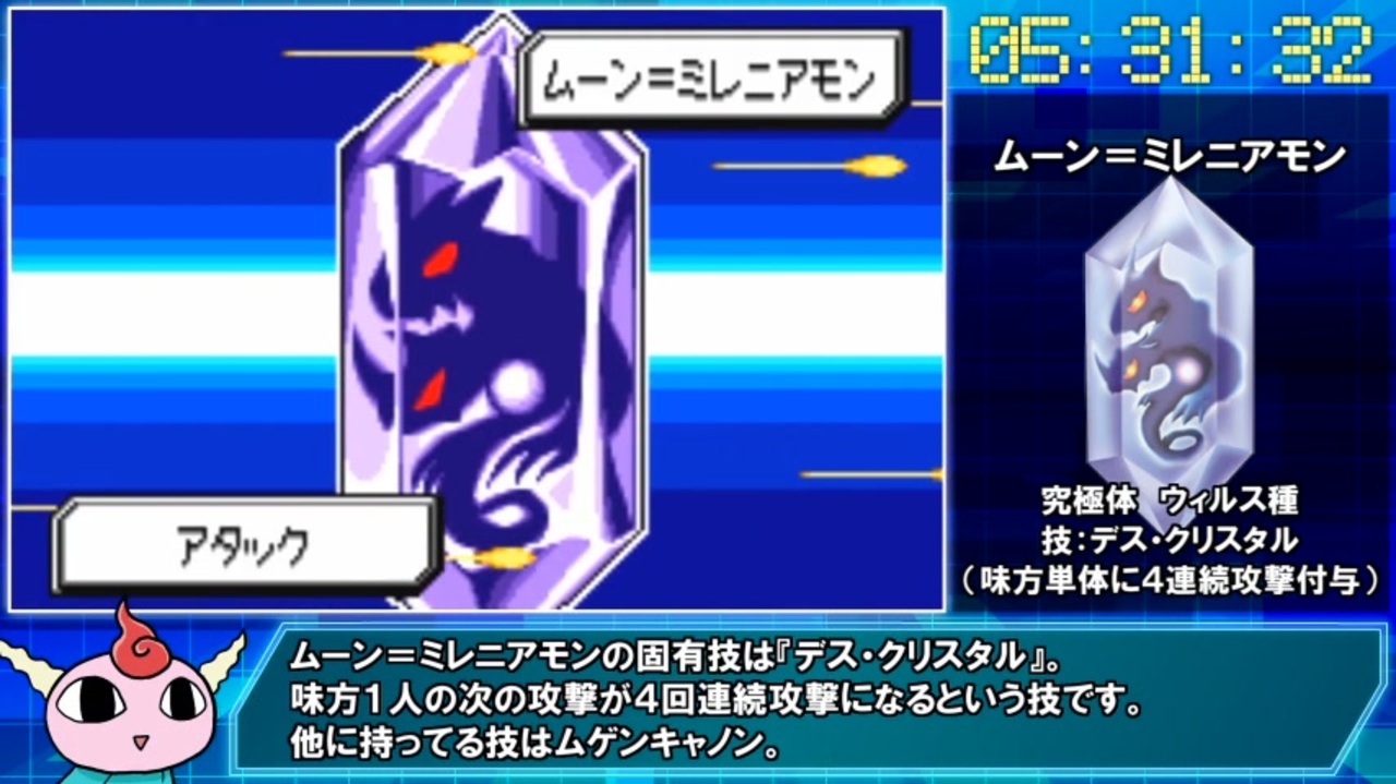 無限大な夢のあとの何もない世の中じゃ何の面白みもないじゃない。(JOKER)<br><br>※画面右上のタイマーですが、今まで頻繁に倍速とか分割編集とかしてたせいで、いつの間にか動画タイトルに書いてるタイムと13分もズレてしまっていました。(問題発言)<br>改めて測り直したら、やっぱりタイトルに書いてあるタイムが正しかったので、この動画の開始時点でタイムを修正してます。<br><br>今年の動画投稿は多分これで最後です。<br>ここまで再生、コメント、広告、いいね!して下さった方々どうもありがとうございました!!<br><br>====================================================<br>プレイ環境:エミュレーター、ジョイパッド使用(連射機不使用)<br>縛り内容:戦闘アニメーションスキップ禁止、マヒ技の使用禁止<br>====================================================<br><br>◇前回:<a href="https://www.nicovideo.jp/watch/sm41312843" class="watch">sm41312843</a><br>◇ポジモンリスト:<a href="https://www.nicovideo.jp/mylist/73619154" target="_blank" rel="noopener">mylist/73619154</a><br>◇RTAパート1集:<a href="https://www.nicovideo.jp/mylist/72135130" target="_blank" rel="noopener">mylist/72135130</a> RTA動画全部:<a href="https://www.nicovideo.jp/mylist/71090194" target="_blank" rel="noopener">mylist/71090194</a>
