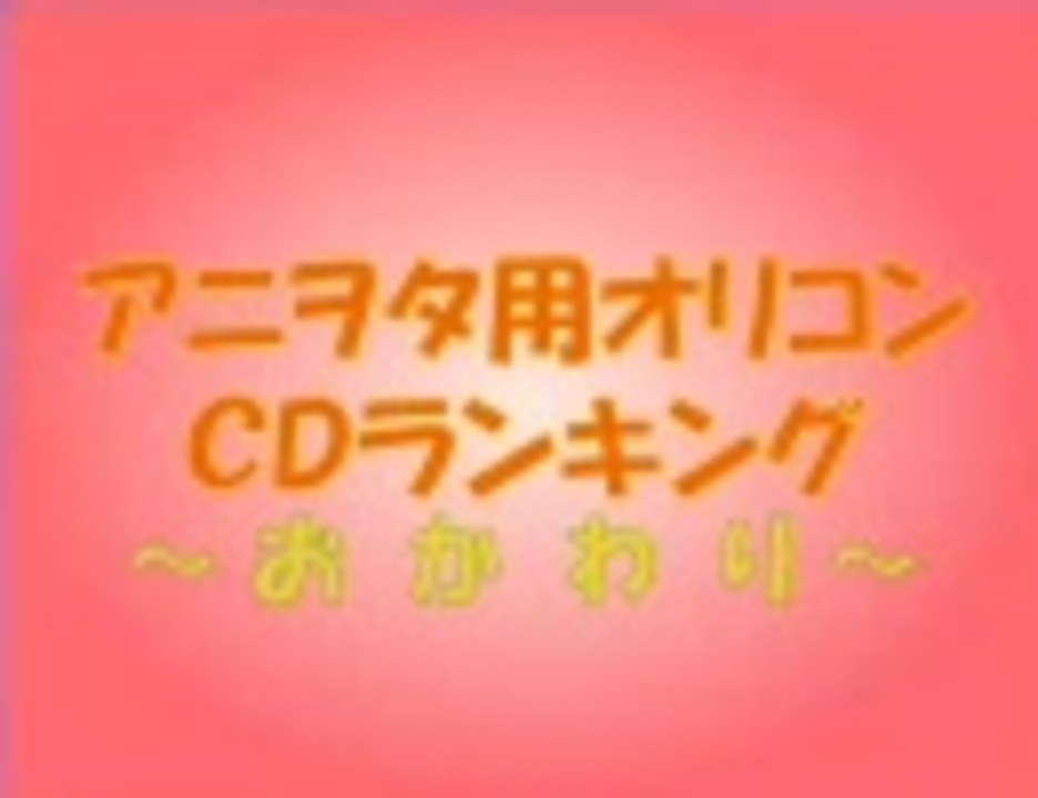 08/07/30発表の<b>オリコンCDウィークリーチャートBEST100</b>よりヲタ向けの楽曲中心に<b>ピックアップ。</b><br />【前週:<a href="https://www.nicovideo.jp/watch/sm4066287" class="watch">sm4066287</a>】【製作本部:<a href="http://blog.livedoor.jp/uui0822/】【これまでのチャート等:user/2415640】" target="_blank" rel="noopener nofollow">http://blog.livedoor.jp/uui0822/】【これまでのチャート等:user/2415640】</a><br /> <font size="2",font color="dc143c">【去年のランキング:<a href="https://www.nicovideo.jp/watch/sm798199" class="watch">sm798199</a>】</font>【<a href="https://www.nicovideo.jp/mylist/1891161" target="_blank" rel="noopener">mylist/1891161</a>】<br /> <font size="2",font color="ffa500">【101~:<a href="https://www.nicovideo.jp/watch/sm4148755" class="watch">sm4148755</a>】</font>【<a href="https://www.nicovideo.jp/mylist/5218542" target="_blank" rel="noopener">mylist/5218542</a>】<br /> <font size="2",font color="1e90ff">【コミックTOP30:<a href="https://www.nicovideo.jp/watch/nm4157982" class="watch">nm4157982</a>】</font>【<a href="https://www.nicovideo.jp/mylist/6040725" target="_blank" rel="noopener">mylist/6040725</a>】<br />今週より諸所の仕様が変更になっております。<br />そして<b>今週のみ映画関係の楽曲を省略</b>させて頂いております、ご了承下さい。<br /><b>訂正:84位→graceful way/Il Cielo/花ノ咲ク星 67位→ラタトスクの騎士<br /> 63位→OP</b><br />【次週:<a href="https://www.nicovideo.jp/watch/sm4222169" class="watch">sm4222169</a>】←代理製作して頂きました、本当に感謝!<br />