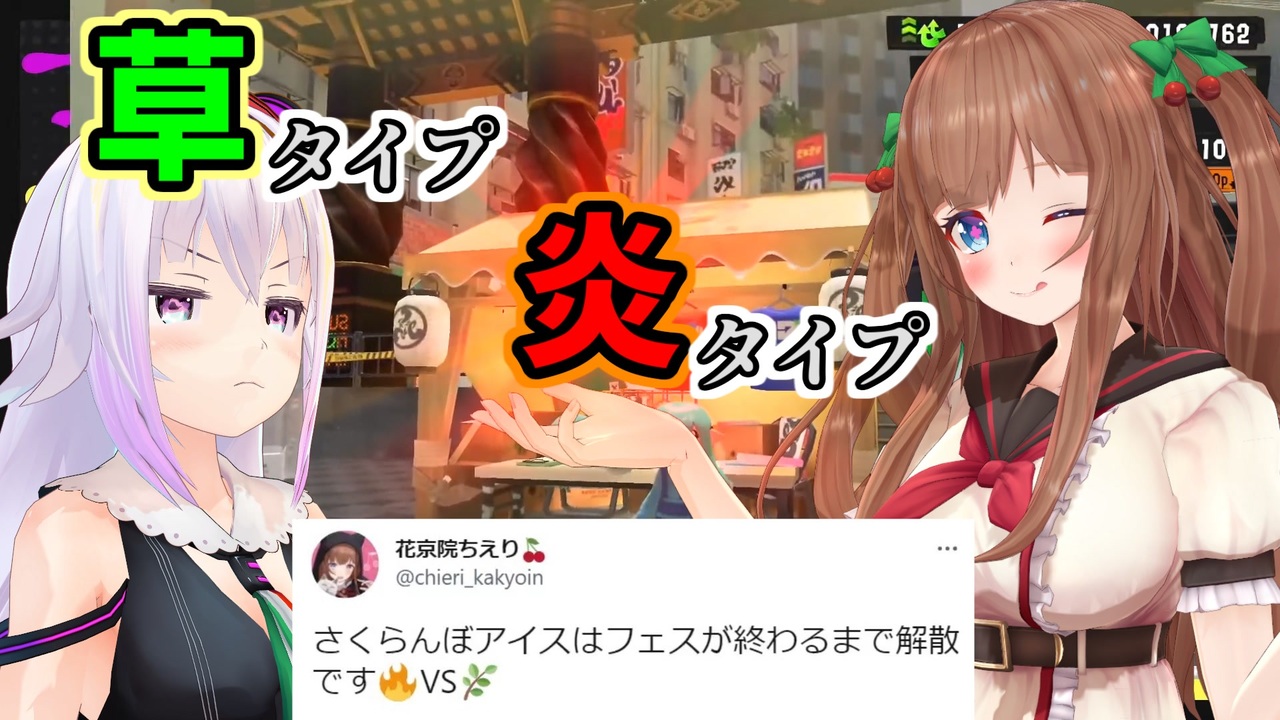 スプラフェスでは、草タイプのピノ様と炎タイプのちえりちゃんに分かれましたね<br>どちらが勝つか楽しみです!<br><br>ちなみに自分は炎です^^<br><br>YouTube版<br><a href="https://www.youtube.com/watch?v=k-VFn7B0BSI" target="_blank" rel="noopener nofollow">https://www.youtube.com/watch?v=k-VFn7B0BSI</a><br><br>元動画<br>【スプラトゥーン3】赤ちゃんイカ今日の目標:叫ばない<br><a href="https://www.youtube.com/watch?v=ee_NlSKvECk&t=1309s" target="_blank" rel="noopener nofollow">https://www.youtube.com/watch?v=ee_NlSKvECk&t=1309s</a><br><br>【スプラトゥーン3】闇にのまれているイカᔦ๑° ꒳ °๑ᔨ<br><a href="https://www.youtube.com/watch?v=WVA63ksUx4E&t=348s" target="_blank" rel="noopener nofollow">https://www.youtube.com/watch?v=WVA63ksUx4E&t=348s</a><br><br><br>カルロ・ピノ<br><a href="https://www.youtube.com/channel/UCMzxQ58QL4NNbWghGymtHvw" target="_blank" rel="noopener nofollow">https://www.youtube.com/channel/UCMzxQ58QL4NNbWghGymtHvw</a><br><br>花京院ちえり<br><a href="https://www.youtube.com/channel/UCP9ZgeIJ3Ri9En69R0kJc9Q" target="_blank" rel="noopener nofollow">https://www.youtube.com/channel/UCP9ZgeIJ3Ri9En69R0kJc9Q</a><br><br>結月シン<br><a href="https://www.youtube.com/channel/UCEeM1NWRQEYmdZyPzxVpOGw" target="_blank" rel="noopener nofollow">https://www.youtube.com/channel/UCEeM1NWRQEYmdZyPzxVpOGw</a><br><br>Twitterやってます <a href="https://twitter.com/@yudukisin" target="_blank" rel="noopener nofollow">https://twitter.com/@yudukisin</a><br><br>