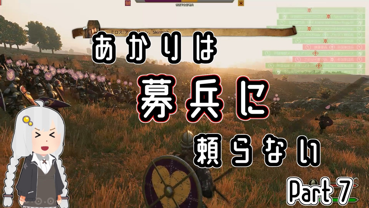 Follow Me!<br><br>Game:<br>Mount&Blade2:Bannerlord 1.8.1<br><br>MOD:<br>Distinguished Service 5.1.5 <a href="https://www.nexusmods.com/mountandblade2bannerlord/mods/1101" target="_blank" rel="noopener nofollow">https://www.nexusmods.com/mountandblade2bannerlord/mods/1101</a><br>Realistic Battle MOD 3.0.3 <a href="https://www.nexusmods.com/mountandblade2bannerlord/mods/791" target="_blank" rel="noopener nofollow">https://www.nexusmods.com/mountandblade2bannerlord/mods/791</a><br><br>BGM:<br>Uneasiness <a href="https://dova-s.jp/bgm/play11258.html" target="_blank" rel="noopener nofollow">https://dova-s.jp/bgm/play11258.html</a><br>タンク・ファイア <a href="https://dova-s.jp/bgm/play9673.html" target="_blank" rel="noopener nofollow">https://dova-s.jp/bgm/play9673.html</a><br><br>Font:<br>しねきゃぷしょん<br>ロンドBスクエア<br><br />投稿者ツイッタ<br>馬刺しの人@onazimaimai