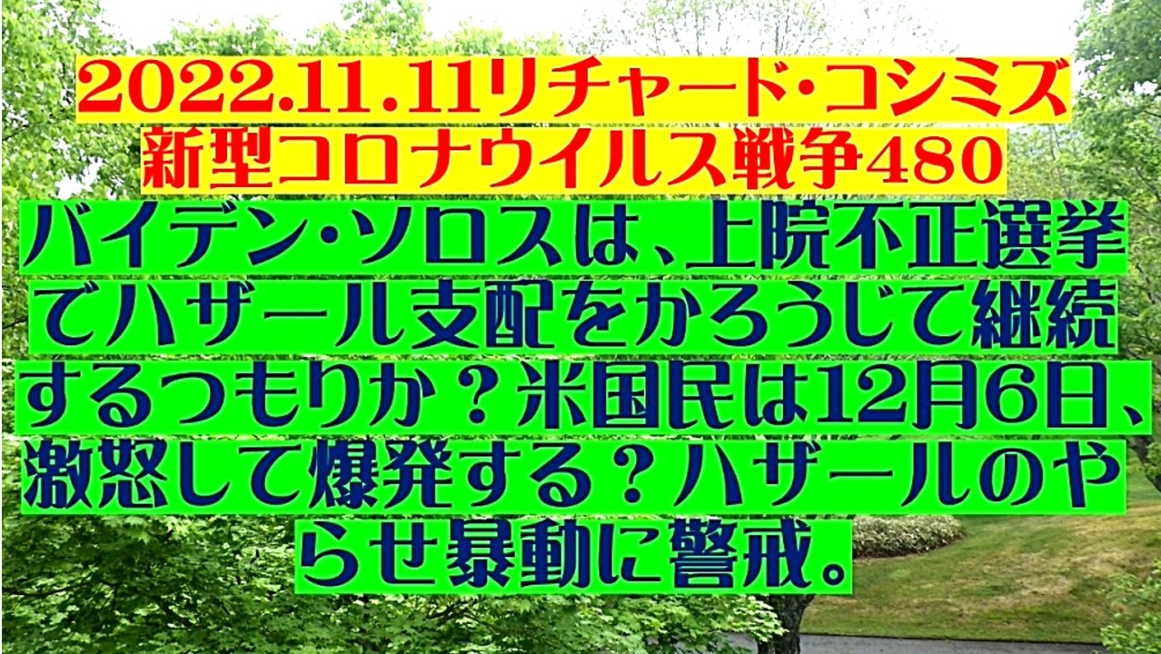 <span style="color: #cc4125;"><strong>「 テーマ:新型コロナウイルス戦争 480 」</strong></span><br><br><span style="color: #ff0000;"><strong>「『 ジョー・バイデン、ジョージ・ソロス 』は、『 上院不正選挙 』で『 ハザール支配 』をかろうじて<br> 継続するつもりか?『 米国民 』は12月6日、激怒して爆発する?『 ハザールのやらせ暴動 』に警戒! 」</strong></span><br><br><span style="color: #0000ff;"><strong>「『 イベルメクチン・アビガン・その他コロナ対策についてのご意見 』をお寄せ下さい! 」</strong></span><br><br> <strong>◐ E-mail:richardkoshimizu@gmail.com<br><br>*「クリエイターサポート」・「フォロー」・「ニコニ広告」等、是非ご協力下さい。 リチャード・コシミズ</strong><br><br><span style="color: #38761d;">◆</span><span style="color: #38761d;"><strong>リチャード・コシミズ 公式 ブログ</strong></span><br> <a href="https://richard-koshimizu.jimdosite.com/" target="_blank" rel="noopener nofollow">https://richard-koshimizu.jimdosite.com/</a><br><br><span style="color: #38761d;">◆</span><span style="color: #38761d;"><strong>リチャード・コシミズ 公式 ホームページ<br> </strong></span><a href="http://richardkoshimizu.boo.jp/" target="_blank" rel="noopener nofollow">http://richardkoshimizu.boo.jp/</a><br><br><span style="color: #38761d;">◆</span><span style="color: #38761d;"><strong>リチャード・コシミズ オンライン ショップ</strong></span><br> <a href="https://rkonline.shop-pro.jp/" target="_blank" rel="noopener nofollow">https://rkonline.shop-pro.jp/</a><br><br><span style="color: #38761d;">◆</span><span style="color: #38761d;"><strong>リチャード・コシミズ 講演会 公式 動画ギャラリー</strong></span><br> <a href="http://www.t-sskk.com/richardkoshimizu/video-gallery/index.html" target="_blank" rel="noopener nofollow">http://www.t-sskk.com/richardkoshimizu/video-gallery/index.html</a><br>