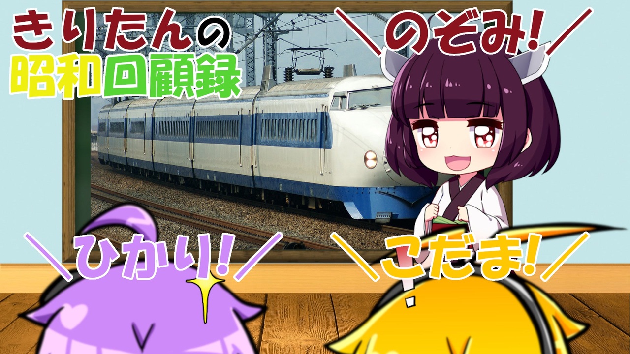 <strong>ようこそ! 昭和回顧録へ!</strong><br><br>昭和39年、出発進行!<br>より速くより遠くという願望は人類共通のものですが、それが実現して当たり前のものになる瞬間というものを目撃する機会はそうそうありません。そういった機会をうっかり見逃してしまわないよう、目を配っていきたいものですね。<br><br>では、ごゆっくりとお楽しみください!<br><br><a href="https://www.nicovideo.jp/watch/sm41260293" class="watch">sm41260293</a> ← 前 次 → <a href="https://www.nicovideo.jp/watch/sm41450860" class="watch">sm41450860</a><br>回顧目録 → <a href="https://www.nicovideo.jp/mylist/70366107" target="_blank" rel="noopener">mylist/70366107</a><br>YouTube版 → <a href="https://youtu.be/3e5zGAv_SmQ" target="_blank" rel="noopener nofollow">https://youtu.be/3e5zGAv_SmQ</a><br><br>シリーズ一話マイリスト →<span style="color: #006699;"> <a href="https://www.nicovideo.jp/mylist/69322831" target="_blank" rel="noopener">mylist/69322831</a></span><br>試作品マイリスト → <a href="https://www.nicovideo.jp/mylist/69322827" target="_blank" rel="noopener">mylist/69322827</a><br><br>更新情報とか質問とかツイッター → <a href="https://twitter.com/suzakatsuki" target="_blank" rel="noopener nofollow">https://twitter.com/suzakatsuki</a> <br><br>~お借りしたもの~<br>キャスト:東北きりたん、結月ゆかり、弦巻マキ<br>立ち絵:blueberry様(SD東北きりたん他)、りんどう様(ボイロミニキャラ後ろ姿素材)<br>背景:Pixabay様<br>小物類:写真AC様<br> イラストAC様<br>BGM:こんとどぅふぇ HiLi様<br> OP ほいっぷ!インストゥルメンタル<br> BGM お昼寝まくら、烏丸の地、ボクの旅立ち、江戸桜の下で、シーサイドクッキー、わんわんといっしょ、目が覚めた<br><br>効果音:魔王魂様<br> On-Jin ~音人~様<br><br>※リンク情報などは、マイリストの説明欄にて補足しています。