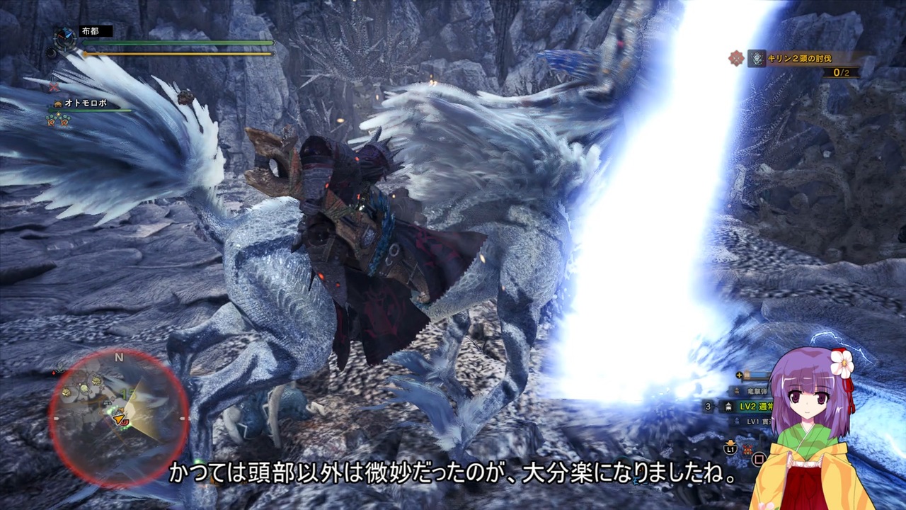 第十八話目狩猟開始です。<br><br>さて、なぜイベクエキリンなのかと言いますと、<br>キリンクエ出してませんでした……<br>下位のキリンは特定の捕獲クエストを複数クリアすると出現するので、<br>逆を言うと条件満たさないとエンディング迎えても出て来ません……<br>今回の経緯としては、<br><br>1.折角出したし、布都ちゃん出しておきたいなぁ。<br>2.あ、ヘビィで狙撃使わなかったし、それで行こう。<br>3.下位にキリン居たよな。戦って装備作ったし(イベクエの認識なし)。<br>4.あれ?無い?<br>5.ネットで調べる。条件必要だと気付く(十八話作成一日前)<br>6.今から捕獲やって録画とか間に合わないかもしれないからイベクエにしよう。<br><br>という事になります。<br><br>パトラッシュ「それだけではないな?ゾラ・マグダラオス装備はこの段階では作れんよな?」<br>うp主 「そ、素材手に入れられたら作れると思うじゃん!!」<br>パトラッシュ「実際は上位プケプケ狩猟後。因みに次も同じ装備で録画しちまったな?」<br>うp主 「お、俺は悪くねぇ!俺は悪くねぇぞ!素材持ってるのに作れない方が悪いんだ!俺は悪くねぇ!!」<br>パトラッシュ「調査不足の貴様が悪いに決まっているだろうが!!死ね!!!」<br>うp主 「ヤッダーパァアァァァァァアアアアア!!」<br><br>という訳で、今回と次回は現段階で作成不可能な装備で挑んでしまっております。<br>申し訳ございません。(因みに動画作成完成後に気付きました……)<br>一応、そこまで強力な装備じゃないから……(言い訳)<br><br>次><a href="https://www.nicovideo.jp/watch/sm41357960" class="watch">sm41357960</a><br>前><a href="https://www.nicovideo.jp/watch/sm41357901" class="watch">sm41357901</a><br>マイリスト><a href="https://www.nicovideo.jp/mylist/73584942" target="_blank" rel="noopener">mylist/73584942</a><br>過去作><a href="https://www.nicovideo.jp/mylist/48033638" target="_blank" rel="noopener">mylist/48033638</a>