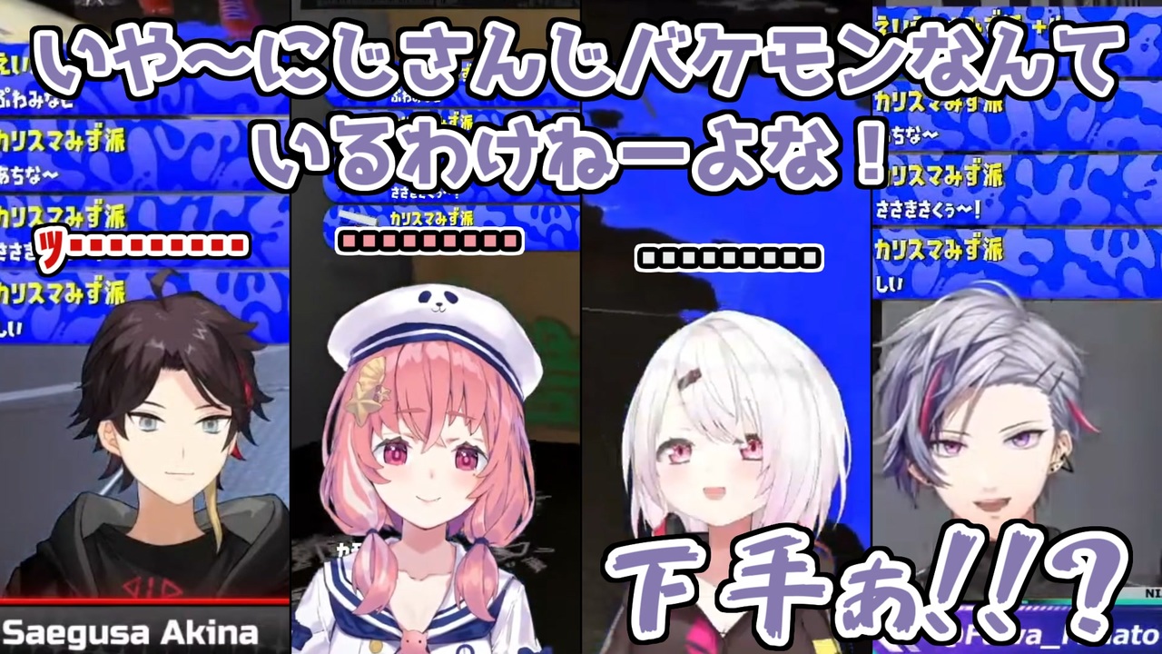 全員とは言わずとも9割強のにじさんじライバーは<br>なんらかのバケモノである<br><br>本家参考動画<br>・三枝明那<br>【スプラトゥーン3 / みず】ささしーふでフェスletgooooooooooooo【三枝明那 / にじさんじ】<br><a href="https://youtu.be/iK8ivCt342Q" target="_blank" rel="noopener nofollow">https://youtu.be/iK8ivCt342Q</a><br>・笹木咲<br>【スプラトゥーン3】フェスみず陣営にささしーふ加勢しますやよ!!!!【笹木咲/にじさんじ】<br><a href="https://youtu.be/P_QFvB0W2zw" target="_blank" rel="noopener nofollow">https://youtu.be/P_QFvB0W2zw</a><br>・椎名唯華<br>【スプラトゥーン3】フルパ水スプラフェスw笹木咲三枝明那不破湊【椎名唯華/にじさんじ】<br><a href="https://youtu.be/4qC-HyGbQ5M" target="_blank" rel="noopener nofollow">https://youtu.be/4qC-HyGbQ5M</a><br>・不破湊<br>【スプラトゥーン3】復活のささしーふ【不破湊/三枝明那/笹木咲/椎名唯華/にじさんじ】<br><a href="https://youtu.be/clb_x2kTbg8" target="_blank" rel="noopener nofollow">https://youtu.be/clb_x2kTbg8</a><br><br>参考元チャンネル&Twitter<br>・三枝明那<br><a href="https://www.youtube.com/channel/UCNW1Ex0r6HsWRD4LCtPwvoQ" target="_blank" rel="noopener nofollow">https://www.youtube.com/channel/UCNW1Ex0r6HsWRD4LCtPwvoQ</a><br><a href="https://twitter.com/333akina" target="_blank" rel="noopener nofollow">https://twitter.com/333akina</a><br>・笹木咲<br><a href="https://www.youtube.com/channel/UCoztvTULBYd3WmStqYeoHcA" target="_blank" rel="noopener nofollow">https://www.youtube.com/channel/UCoztvTULBYd3WmStqYeoHcA</a><br><a href="https://twitter.com/saku_sasaki" target="_blank" rel="noopener nofollow">https://twitter.com/saku_sasaki</a><br>・椎名唯華<br><a href="https://www.youtube.com/channel/UC_4tXjqecqox5Uc05ncxpxg" target="_blank" rel="noopener nofollow">https://www.youtube.com/channel/UC_4tXjqecqox5Uc05ncxpxg</a><br><a href="https://twitter.com/yuika_siina" target="_blank" rel="noopener nofollow">https://twitter.com/yuika_siina</a><br>・不破湊<br><a href="https://www.youtube.com/channel/UC6wvdADTJ88OfIbJYIpAaDA" target="_blank" rel="noopener nofollow">https://www.youtube.com/channel/UC6wvdADTJ88OfIbJYIpAaDA</a><br><a href="https://twitter.com/Fuwa_Minato" target="_blank" rel="noopener nofollow">https://twitter.com/Fuwa_Minato</a><br><br>ニコニコのダイコンマンリスト<br>「バーチャルYouTuberシリーズ」↓<br><a href="https://www.nicovideo.jp/mylist/62551838" target="_blank" rel="noopener">mylist/62551838</a><br>「バーチャルYouTuberシリーズ2」↓<br><a href="https://www.nicovideo.jp/mylist/67858437" target="_blank" rel="noopener">mylist/67858437</a><br>「バーチャルYouTuberシリーズ3」↓<br><a href="https://www.nicovideo.jp/mylist/71340675" target="_blank" rel="noopener">mylist/71340675</a><br>「バーチャルYouTuberシリーズ4」↓<br><a href="https://www.nicovideo.jp/mylist/73995264" target="_blank" rel="noopener">mylist/73995264</a><br><br>ダイコンマンのTwitter<br><a href="https://twitter.com/Daikon_Man_V" target="_blank" rel="noopener nofollow">https://twitter.com/Daikon_Man_V</a>