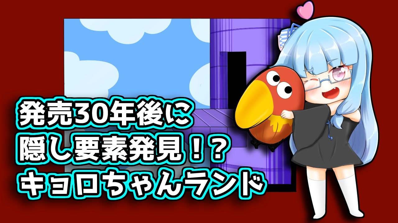 <span style="font-size: 18px;">キョロちゃんランド発売後30年間見つかっていなかった隠し要素が発見されました!<br>この動画はその隠し要素を使った上での縛りプレイ実況となります<br>縛り内容:すべてのステージでTECHNIQUE100点を取る<br>「ボイロレトロゲーム実況祭2」(<a href="https://www.nicovideo.jp/watch/sm41042221" class="watch">sm41042221</a>)の参加動画です。</span><br><br>次:まだ<br><br /><span style="color: #00ff00; font-size: 18px;"><strong><u>RTA in biim 2025 winterにて、年末年始にRTAを走ります!!!!<br>↓イベントスケジュールはこちら↓<br><a href="https://horaro.org/rtainbiim/2025-w" target="_blank" rel="noopener nofollow">https://horaro.org/rtainbiim/2025-w</a></u></strong></span><br><s> </s><br>色んなシリーズを並行投稿中です!<br>気楽なRTAがしたい茜ちゃん→ <a href="https://www.nicovideo.jp/series/230433" target="_blank" rel="noopener">series/230433</a><br>すべてを救いたい葵ちゃん→ <a href="https://www.nicovideo.jp/series/273860" target="_blank" rel="noopener">series/273860</a><br>単発実況→<a href="https://www.nicovideo.jp/series/369107" target="_blank" rel="noopener">series/369107</a><br>AmongUs眼鏡部→<a href="https://www.nicovideo.jp/series/283075" target="_blank" rel="noopener">series/283075</a><br>音MADとか→<a href="https://www.nicovideo.jp/series/372491" target="_blank" rel="noopener">series/372491</a><br>Youtubeにも同時に投稿しています<br><a href="http://youtube.com/pirohiko?sub_confirmation=1" target="_blank" rel="noopener nofollow">http://youtube.com/pirohiko?sub_confirmation=1</a><br>Twitter: <a href="https://twitter.com/pirohiko" target="_blank" rel="noopener nofollow">https://twitter.com/pirohiko</a><br><u> </u><br><span style="color: #00ff00; font-size: 16px;"><strong>差し入れ感覚でクリエイターサポートしていただけると飛び跳ねて喜びます!<br><a href="https://creator-support.nicovideo.jp/registration/37189" target="_blank" rel="noopener nofollow">https://creator-support.nicovideo.jp/registration/37189</a></strong></span><br><s> </s><br><span style="color: #ff0000; font-size: 18px;"><strong>最新動画→<a href="https://www.nicovideo.jp/watch/sm45655408" class="watch">sm45655408</a></strong></span><br><span style="color: #4a86e8; font-size: 18px;"><strong>直近のオススメ→<a href="https://www.nicovideo.jp/watch/sm45655408" class="watch">sm45655408</a></strong></span><br><s> </s><br><br><a target="_blank" href="https://qa.nicovideo.jp/faq/show/19424?site_domain=default" style="font-size: 13px;color: #657586; text-decoration: underline; line-height: 1.4">この動画は投稿者によって修正されました</a>