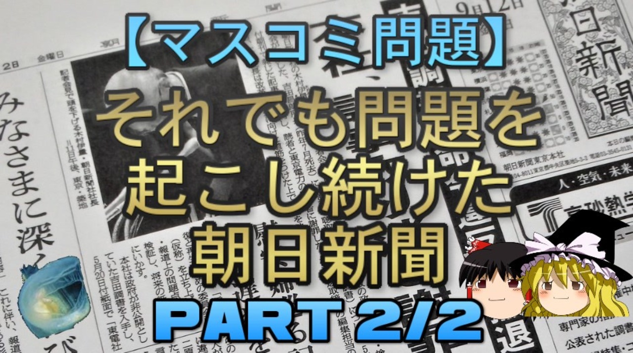 さて、本日は前回に引き続き慰安婦報道訂正後の朝日新聞の問題について扱っていきます。<br>どようびにこだわっているわけではない<br><br>本日のブログ記事<br><a href="https://oogchib.hateblo.jp/entry/2022/11/13/211117" target="_blank" rel="noopener nofollow">https://oogchib.hateblo.jp/entry/2022/11/13/211117</a><br><br>元記事<br>何一つ自浄作用の無かった朝日新聞<br><a href="http://ooguchib.blog.fc2.com/blog-entry-418.html" target="_blank" rel="noopener nofollow">http://ooguchib.blog.fc2.com/blog-entry-418.html</a><br>れでも問題を起こし続けた朝日新聞とテレビ朝日<br><a href="http://ooguchib.blog.fc2.com/blog-entry-417.html" target="_blank" rel="noopener nofollow">http://ooguchib.blog.fc2.com/blog-entry-417.html</a><br>朝日新聞の事例にみるマスコミと一般人の致命的な齟齬<br><a href="http://ooguchib.blog.fc2.com/blog-entry-420.html" target="_blank" rel="noopener nofollow">http://ooguchib.blog.fc2.com/blog-entry-420.html</a><br><br>関連動画<br>【ゆっくり解説】朝日新聞の慰安婦報道検証 part1/2<br><a href="https://www.nicovideo.jp/watch/sm40779826" class="watch">sm40779826</a><br>【ゆっくり解説】朝日新聞の慰安婦報道検証 part2/2<br><a href="https://www.nicovideo.jp/watch/sm40813181" class="watch">sm40813181</a><br><br>引用ソースと動画のテキストをブログ日韓問題(初心者向け)のほうへ掲載しています。<br><br>日韓問題(初心者向け)<br><a href="https://oogchib.hateblo.jp/" target="_blank" rel="noopener nofollow">https://oogchib.hateblo.jp/</a><br><br>暇つぶしにどうぞ<br><a href="http://ooguchib.blog.fc2.com/" target="_blank" rel="noopener nofollow">http://ooguchib.blog.fc2.com/</a> <br><br>twitter @ooguchib<br><a href="https://twitter.com/ooguchib" target="_blank" rel="noopener nofollow">https://twitter.com/ooguchib</a><br><br>前 <a href="https://www.nicovideo.jp/watch/sm41338248" class="watch">sm41338248</a> <a href="https://www.nicovideo.jp/mylist/59069876" target="_blank" rel="noopener">mylist/59069876</a> 次回 <a href="https://www.nicovideo.jp/watch/sm41399812" class="watch">sm41399812</a><br><br>番外編マイリスト<br><a href="https://www.nicovideo.jp/mylist/62992608" target="_blank" rel="noopener">mylist/62992608</a><br><br>YouTube版<br><a href="https://youtu.be/1wlXc0Mqm28" target="_blank" rel="noopener nofollow">https://youtu.be/1wlXc0Mqm28</a><br>
