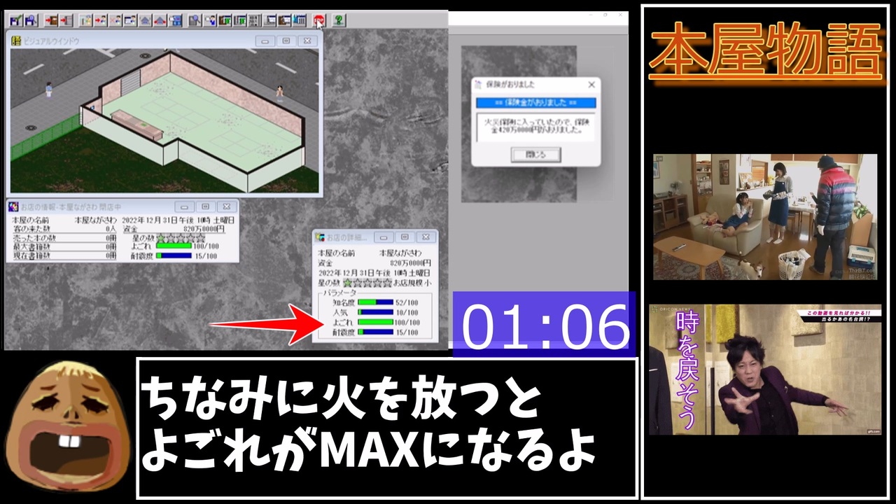 最近は電子書籍派なので初投稿です。<br><br>フリーゲームRTAフェスの第2回が4年ぶりに開催されるみたいですよ。→ <a href="https://twitter.com/frgrtafes2/status/1591765074888491008" target="_blank" rel="noopener nofollow">https://twitter.com/frgrtafes2/status/1591765074888491008</a><br>自作したゲーム あべこべワールド(RPGアツマールでPCでもスマホでも遊べます。所要時間は10時間くらい?)→ <a href="https://game.nicovideo.jp/atsumaru/games/gm982" target="_blank" rel="noopener nofollow">https://game.nicovideo.jp/atsumaru/games/gm982</a><br>本屋物語をやってみたい人はこちらからダウンロード。<a href="https://kairosoft.net/game/pc/books.html" target="_blank" rel="noopener nofollow">https://kairosoft.net/game/pc/books.html</a><br><br>(11/17追記)ニコニ広告ありがと~<br><u>ティガーさん、basicerII さん、Enter さん、アストラ さん、みーる さん、JK さん、ラウタ さん、CV さん、朝比奈 さん、しまじろう さん、SHILUBA さん、マカヒキ さん、ほりすぎ さん、</u>Thanks!!<br>Q.「追走しようと思ったけどまんが奥の細道の方が面白かったのでこちらを走ります」<br>A.「がんば!(たしか奥の細道はグランプリみたいな目標無かった気もするが・・・)」