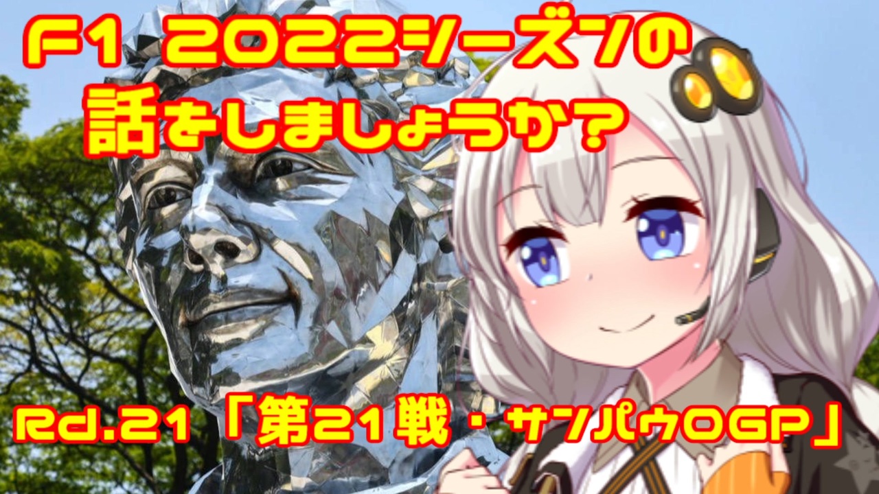 「ブラジル50回目のF1を記念して、アイルトン・セナのアルミ像が登場!!」by紲星あかり<br><br><br>おはこんばんちは、紲星あかりです。<br>この動画は、F1 2022年シーズンをダイジェストでお送りしています。<br>今回は第21戦・サンパウロGPをお送りします。<br>前回のGPで年間最多勝記録を更新し、どこまで記録を伸ばせるのか注目が集まる<br>フェルスタッペン。シーズン連続勝利がかかっているハミルトン。さらに僅差となっている<br>ランキング争いなど、今年のインテルラゴスも熾烈な戦いとなるのでしょうか?<br><br><br><br><br><span style="color: red;">(ご注意)この動画の情報は真実とは限りません。また、誤字・脱字が含まれる場合があります。ご了承ください。</span><br><br><br>前→第20戦・メキシコGP <a href="https://www.nicovideo.jp/watch/sm41316901" class="watch">sm41316901</a><br>次→最終戦・アブダビGP <a href="https://www.nicovideo.jp/watch/sm41421685" class="watch">sm41421685</a><br><br> <br>F12022シーズンの話をしましょうか?マイリスト→<a href="https://www.nicovideo.jp/mylist/72892585" target="_blank" rel="noopener">mylist/72892585</a><br><br>うp主のF1動画シリーズ<br>F12021シーズンの話をしましょうか?マイリスト→<a href="https://www.nicovideo.jp/mylist/70735663" target="_blank" rel="noopener">mylist/70735663</a><br>F12020シーズンの話をしましょうか?マイリスト→<a href="https://www.nicovideo.jp/mylist/67651731" target="_blank" rel="noopener">mylist/67651731</a> <br><span style="color: #000000; font-size: 14px;">F12019シーズンの話をしましょうか?マイリスト</span><span style="color: #000000; font-size: 13px;">→</span><a href="https://www.nicovideo.jp/mylist/64678414" target="_blank" rel="noopener">mylist/64678414</a><br><span style="color: #000000; font-size: 14px;">F12018シーズンの話をしましょうか?マイリスト</span><span style="color: #000000; font-size: 13px;">→</span><a href="https://www.nicovideo.jp/mylist/61514606" target="_blank" rel="noopener">mylist/61514606</a><br>F1の話をしましょうか?マイリスト→<a href="https://www.nicovideo.jp/mylist/40499353" target="_blank" rel="noopener">mylist/40499353</a><br>F1の話をしましょうか?OPフルバージョン→<a href="https://www.nicovideo.jp/mylist/59030210" target="_blank" rel="noopener">mylist/59030210</a><br>F1 CM集→<a href="https://www.nicovideo.jp/mylist/57297507" target="_blank" rel="noopener">mylist/57297507</a><br><br>