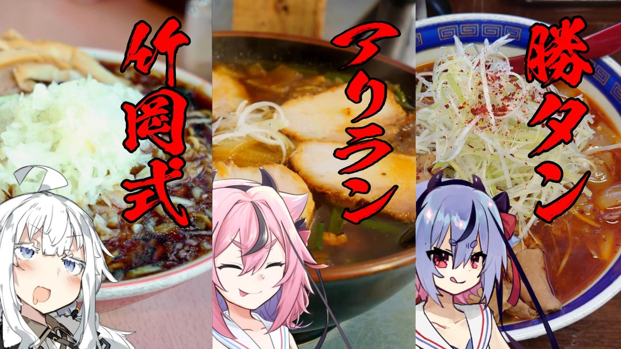 アクロさん(<a href="https://www.nicovideo.jp/user/30818455" target="_blank" rel="noopener">user/30818455</a>)主催の第二回ラーメン祭に参加します!<br><span style="color: #ff0000; font-size: 24px;"><strong>千葉三大ラーメン食べてきました!!</strong></span><br><br>竹岡式ラーメン 梅乃屋さん<br> ●<a href="https://goo.gl/maps/N7cy9z1sT5kjsfXz7" target="_blank" rel="noopener nofollow">https://goo.gl/maps/N7cy9z1sT5kjsfXz7</a><br>勝浦タンタンメン 江ざわさん<br> ●<a href="https://goo.gl/maps/rKegdFsCVbdkzZ7w5" target="_blank" rel="noopener nofollow">https://goo.gl/maps/rKegdFsCVbdkzZ7w5</a><br>アリランらあめん 八平の食堂さん<br> ●<a href="https://goo.gl/maps/HUFe2ayEcU2GvmSE6" target="_blank" rel="noopener nofollow">https://goo.gl/maps/HUFe2ayEcU2GvmSE6</a><br><br>3大以外の訪れたラーメン屋さん<br>屋台ラーメン とんこつ貴生 松戸本店さん<br> ●<a href="https://goo.gl/maps/cFJwLEpxKCkka9AG8" target="_blank" rel="noopener nofollow">https://goo.gl/maps/cFJwLEpxKCkka9AG8</a><br>麺屋 いとうさん<br> ●<a href="https://goo.gl/maps/EaNYCrgTPtaNWhBK7" target="_blank" rel="noopener nofollow">https://goo.gl/maps/EaNYCrgTPtaNWhBK7</a><br>松戸富田製麺 ららぽーとTOKYO-BAY店さん<br> ●<a href="https://goo.gl/maps/nc7PfPko1W5oYn1k8" target="_blank" rel="noopener nofollow">https://goo.gl/maps/nc7PfPko1W5oYn1k8</a><br>兎に角さん<br> ●<a href="https://goo.gl/maps/1wzGDGNmprt5RvUB7" target="_blank" rel="noopener nofollow">https://goo.gl/maps/1wzGDGNmprt5RvUB7</a><br><br><span style="color: #262626;"><strong>※個人の感想であり行かれる際は他の口コミも参考にしてください※</strong></span><br>正直結構意見が分かれるかもしれません。<br><br>お借りした立ち絵<br> からい先生 <a href="https://seiga.nicovideo.jp/seiga/im9233706" target="_blank" rel="noopener">im9233706</a><br> mochi0101_831先生 <a href="https://seiga.nicovideo.jp/seiga/im10881133" target="_blank" rel="noopener">im10881133</a><br> 委員長先生 <a href="https://seiga.nicovideo.jp/seiga/im10854855" target="_blank" rel="noopener">im10854855</a><br> ピピ先生 <a href="https://seiga.nicovideo.jp/seiga/im10757089" target="_blank" rel="noopener">im10757089</a><br> Aik先生 <a href="https://seiga.nicovideo.jp/seiga/im10801713" target="_blank" rel="noopener">im10801713</a><br> 浅井麻先生 <a href="https://seiga.nicovideo.jp/seiga/im10817822" target="_blank" rel="noopener">im10817822</a><br><br>ソフト<br>CyberLink PowerDirectoSoftalk<br>A.I.VOICE 紲星あかり<br>ガイノイドTalk 鳴花ヒメ・ミコト<br>SeirenVoice<br><br>Twitter <a href="https://twitter.com/macura_Levorge" target="_blank" rel="noopener nofollow">https://twitter.com/macura_Levorge</a><br><br><br><br><br>