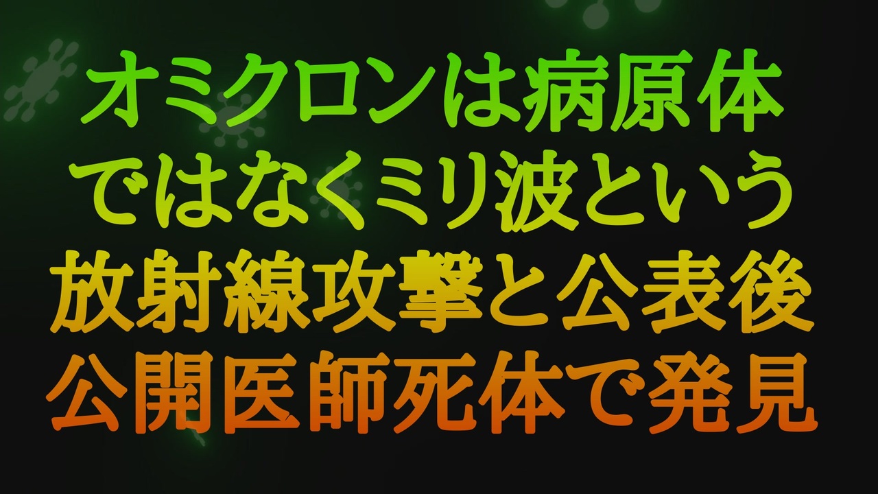 オミクロンは病原体ではなくミリ波である<br>2022年11月17日<br><a href="https://t.me/thefinalwakeupcallchannel/7087" target="_blank" rel="noopener nofollow">https://t.me/thefinalwakeupcallchannel/7087</a><br><a href="https://www.youtube.com/watch?v=tbjsG-jYz6w" target="_blank" rel="noopener nofollow">https://www.youtube.com/watch?v=tbjsG-jYz6w</a><br><br>なぜ夜にやってくるのか?放射線を測定してみると、夜間は法定基準値の最大15倍にもなることがわかった。<br>その時間帯とは、午前2時から4時の間。<br>この時間帯はインターネットのトラフィックが少なく、人がベッドで安らかに眠っている時間帯であり、測定時にはこの時間帯の放射線量が判明しました。<br>閉め切ったドアや壁は、ミリ波の障害にはなりません。<br> 酸化グラフェンを接種すると、オミクロンは体内で適切な物質を見つけ、その周波数を延長し増幅します。最初は吐き気や下痢、次に発熱、視覚障害、頭痛、方向感覚の喪失、記憶喪失などを起こします。- なぜ咳をする必要があるのでしょうか?<br>体が(ワクチンから)酸化グラフェンを取り除こうとして、肺を通してそうしているからです。これが、COVID療法でFLUIMUCILが効く理由です。あるいはフルイムシルの有効成分であるNAC、アセチルシステイン。<br>それから、光に違和感を感じ、おそらく耳鳴り...特に通信鉄塔の近くにお住まいの方。<br>皮膚では、赤み、かゆみ、ほてり、帯状疱疹、乾癬、場所によっては震え、さらには震えを経験するかもしれません。<br>スペインでは、オミクロンは12月24日に現れると発表しています。いつ来るかは、ボタンを押すだけなので、よくわかりますね...。<br><br>身を守る方法<br>ルーターや電化製品の電源を切り、銅板を使ったり、アルミホイルやファラデークロスで包んだりしてください。- 頻繁にシャワーを浴びる。<br>パラセタモールはグルタチオン拮抗薬なので服用しない。<br>グルタチオンは酸化グラフェンを分解します。<br>保護ラジウムであるメラトニンを摂取してください。<br>亜鉛とビタミン C、D3、E を多く摂取する。<br><br>ベカルディ博士は、この情報を公開した直後に自宅で死亡しているのが発見された。偶然の一致か?彼は、この発見を先に欧州委員会に報告していたはずなのに!?<br>同じ頃、欧州委員会のサソリ委員長も死体で発見された。<br>彼はビスカルディ博士の発見を賞賛し、その公表を望んでいたのだ。<br>繰り返しますが、これは病原体ではなく、いわば放射能による攻撃です。<br>信じようが信じまいが、どうとでもしてください。<br>私はそれを共有することが重要だと思ったのです。<br><br>放射線とワクチン<br><a href="https://x.gd/vObd0" target="_blank" rel="noopener nofollow">https://x.gd/vObd0</a><br />著作権、肖像権に配慮して作成しております。<br><br>◆気になったニュースの台本!?<br>メモ代わりに作った台本をそのままあげてます<br><a href="https://keiichiro8140.hatenablog.com/." target="_blank" rel="noopener nofollow">https://keiichiro8140.hatenablog.com/.</a><br><br><br>ここからはシリーズ紹介<br><br><br>◆ ワクチン解毒・デトックス<br><a href="https://x.gd/fZweg" target="_blank" rel="noopener nofollow">https://x.gd/fZweg</a><br><br>◆ウイリアム・マキス博士のがん治療(イベルメクチン・フェンベンダゾール等)<br><a href="https://x.gd/AtFYS" target="_blank" rel="noopener nofollow">https://x.gd/AtFYS</a><br><br>◆予防接種健康被害救済制度<br><a href="https://x.gd/0xK9x" target="_blank" rel="noopener nofollow">https://x.gd/0xK9x</a><br><br>◆気になったニュース #1501~<br><br>◆ 【ショートver】気になったニュース<br><a href="https://x.gd/7MxXC" target="_blank" rel="noopener nofollow">https://x.gd/7MxXC</a><br><br>◆ 気になったニュース #1001~<br><a href="https://x.gd/Lp8gv" target="_blank" rel="noopener nofollow">https://x.gd/Lp8gv</a><br><br>◆ 気になったニュース #501~<br><a href="https://x.gd/EmbS4" target="_blank" rel="noopener nofollow">https://x.gd/EmbS4</a><br><br>◆ 気になったニュース #1~#500<br><a href="https://x.gd/uPhNb" target="_blank" rel="noopener nofollow">https://x.gd/uPhNb</a><br><br>◆ X(旧Twitter)・テレグラムで気になった情報<br><a href="https://x.gd/YG6FT" target="_blank" rel="noopener nofollow">https://x.gd/YG6FT</a><br><br>◆ 日比谷5万人パレードデ⚪生放送アーカイブ動画<br><a href="https://x.gd/3CHJv" target="_blank" rel="noopener nofollow">https://x.gd/3CHJv</a><br><br>◆日比谷5万人パレード⚪モのマイリスト作ってみました<br><a href="https://nico.ms/mylist/76828848?ref=sp_other" target="_blank" rel="noopener nofollow">https://nico.ms/mylist/76828848?ref=sp_other</a><br><br>◆3.30 令和の百姓⚪⚪<br><a href="https://www.nicovideo.jp/series/511791?ref=garage_share_other" target="_blank" rel="noopener nofollow">https://www.nicovideo.jp/series/511791?ref=garage_share_other</a><br><br>◆ 及川幸久さんの【XNEWS】シリーズ<br><a href="https://x.gd/3k78K" target="_blank" rel="noopener nofollow">https://x.gd/3k78K</a><br><br>◆これまでの動画<a href="https://x.gd/sPXoJ" target="_blank" rel="noopener nofollow">https://x.gd/sPXoJ</a><br><br>◆もしも(BAN)の時のためのマイリンク集<a href="https://lit.link/K-16_News44" target="_blank" rel="noopener nofollow">https://lit.link/K-16_News44</a><br><br>