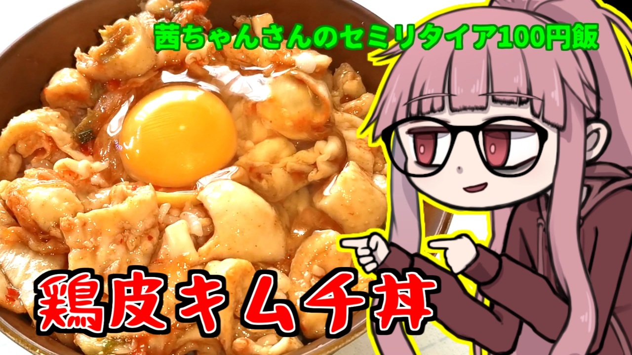 この動画は人生セミリタイアを目指す茜ちゃんさんが<br>大体100円ぐらいの飯を作って満足する動画です。<br><br>今回のレシピは「鶏皮キムチ丼」<br><br>鶏皮は安価な上に美味しい神コスパ食材なので、節約家はぜひ利用してみてください。<br><br><br>●YouTube版<br><a href="https://youtu.be/10v6T1K9_js" target="_blank" rel="noopener nofollow">https://youtu.be/10v6T1K9_js</a><br><br /><span style="color: #ff0000; font-size: 24px;"><strong>釧路を紹介するブログ始めました</strong></span>:<a href="https://946de2100.com" target="_blank" rel="noopener nofollow">https://946de2100.com</a><br><br><span style="color: #ff0000; font-size: 16px;"><strong>●おススメ動画:</strong></span><span style="color: #ff0000; font-size: 18px;"><strong>【歴史解説】かつて 釧路を支配していたのは佐賀だった ~釧路元町の始まりと佐野孫右衛門の盛衰~</strong></span><br><br><a href="https://www.nicovideo.jp/watch/sm44267722" class="watch">sm44267722</a><br><br><br><span style="color: #ff0000; font-size: 18px;"><strong>●YouTubeチャンネルも登録よろしくお願いします</strong></span><br><strong>釧路チャンネル <a href="https://www.youtube.com/@znd-kaisetu" target="_blank" rel="noopener nofollow">https://www.youtube.com/@znd-kaisetu</a></strong><br>恋結シラリカソロチャンネル <a href="https://www.youtube.com/@enmusubi-shirarika" target="_blank" rel="noopener nofollow">https://www.youtube.com/@enmusubi-shirarika</a><br><br><br>ほしいものリスト <a href="https://www.amazon.jp/hz/wishlist/ls/2OUUB1JQSRUWG?ref_=wl_share" target="_blank" rel="noopener nofollow">https://www.amazon.jp/hz/wishlist/ls/2OUUB1JQSRUWG?ref_=wl_share</a><br>クリエイターサポート<a href="https://creator-support.nicovideo.jp/registration/116665199" target="_blank" rel="noopener nofollow">https://creator-support.nicovideo.jp/registration/116665199</a>