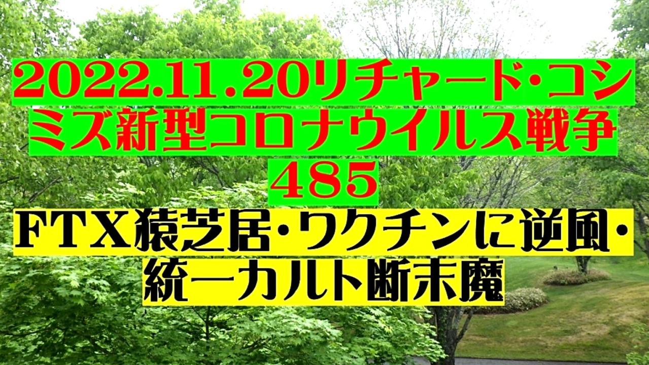 <span style="color: #cc4125;"><strong>「 テーマ:新型コロナウイルス戦争 485 」</strong></span><br><br><span style="color: #ff0000;"><strong>「『 FTX猿芝居 』・『 ワクチンに逆風 』・『 統一教会カルト断末魔 』」</strong></span><br><br><span style="color: #0000ff;"><strong>「『 イベルメクチン・アビガン・その他コロナ対策についてのご意見 』をお寄せ下さい! 」</strong></span><br><br> <strong>◐ E-mail:richardkoshimizu@gmail.com<br><br>*「クリエイターサポート」・「フォロー」・「ニコニ広告」等、是非ご協力下さい。 リチャード・コシミズ</strong><br><br><span style="color: #38761d;"><strong>◐リチャード・コシミズ 公式 ブログ</strong></span><br> <a href="https://richard-koshimizu.jimdosite.com/" target="_blank" rel="noopener nofollow">https://richard-koshimizu.jimdosite.com/</a><br><br><span style="color: #38761d;"><strong>◐リチャード・コシミズ 公式 ホームページ<br> </strong></span><a href="http://richardkoshimizu.boo.jp/" target="_blank" rel="noopener nofollow">http://richardkoshimizu.boo.jp/</a><br><br><span style="color: #38761d;"><strong>◐リチャード・コシミズ オンライン ショップ</strong></span><br> <a href="https://rkonline.shop-pro.jp/" target="_blank" rel="noopener nofollow">https://rkonline.shop-pro.jp/</a><br><br><span style="color: #38761d;"><strong>◐リチャード・コシミズ 講演会 公式 動画ギャラリー</strong></span><br> <a href="http://www.t-sskk.com/richardkoshimizu/video-gallery/index.html" target="_blank" rel="noopener nofollow">http://www.t-sskk.com/richardkoshimizu/video-gallery/index.html</a><br>