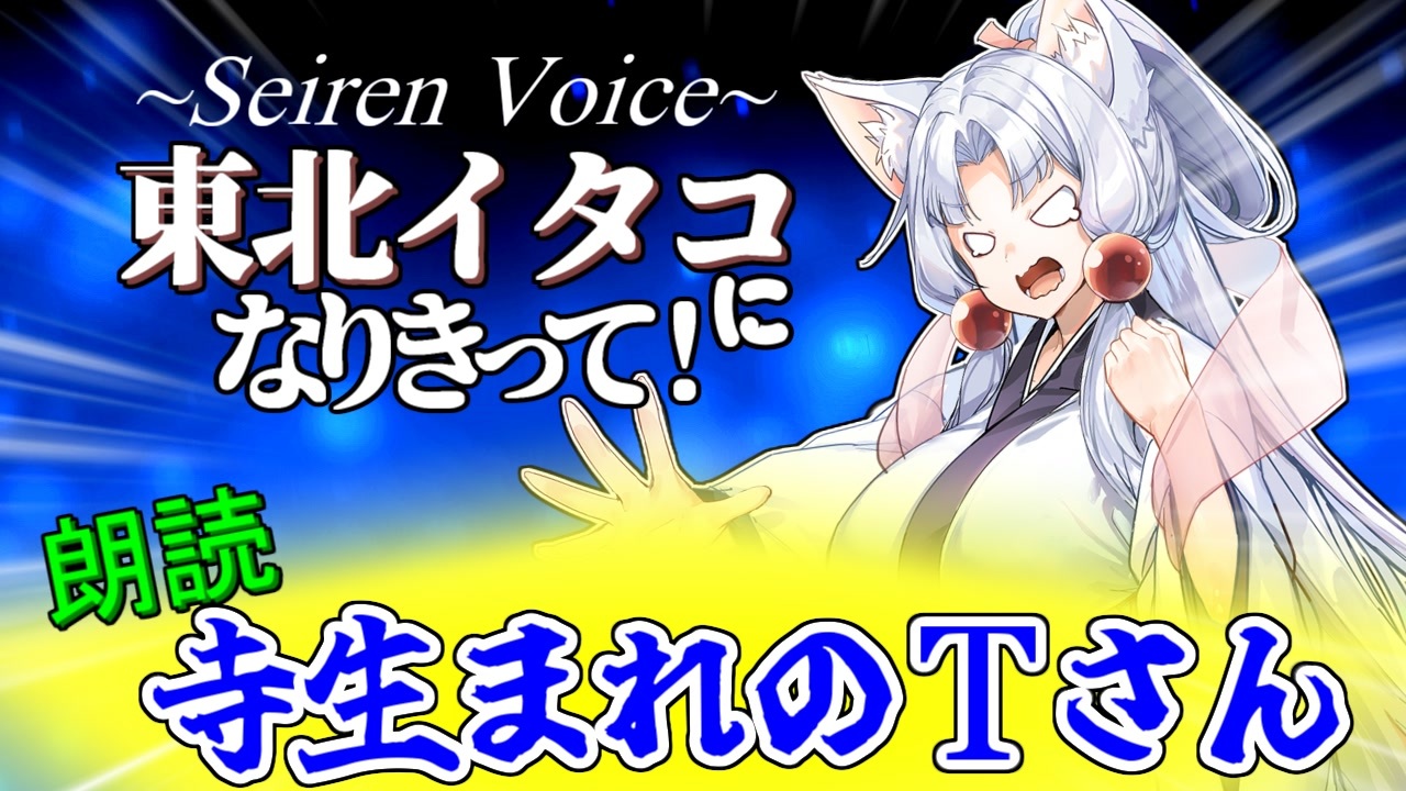 <span style="color: #ff0000;">いいね♥</span> を押すと、寺生まれのTさんからのありがたいお言葉が聞けます。<br><br>本動画で使用しているSeirenVoiceは<br>株式会社ドワンゴのSeirenVoice先行配布キャンペーンで頂きました。誠にありがとうございます。<br><br>ちなみに青森生まれの投稿者がガチの津軽弁を読み上げてみましたが、さすがにアプリが読み取れませんでした。<br>お金を意味する「じぇんこ」が「〇ンコ」になったのでお蔵入りとなりました。<br><br>東北ずん子公式サイト<br><a href="https://zunko.jp/" target="_blank" rel="noopener nofollow">https://zunko.jp/</a><br>SeirenVoice公式サイト<br><a href="https://seiren-voice.dmv.nico/" target="_blank" rel="noopener nofollow">https://seiren-voice.dmv.nico/</a><br><br /><span style="color: #0000ff; font-size: 18px;"><strong>【最新の動画 2022/11/22】</strong></span><span style="color: #9900ff; font-size: 24px;"><strong><a href="https://www.nicovideo.jp/watch/sm41405105" class="watch">sm41405105</a></strong></span><br><span style="color: #ff9900; font-size: 18px;"><strong>東北イタコさんになれる声変換ソフト「Seiren Voice」で、有名コピペを読んでみました!</strong></span><br><br><br>【他の動画はこちら!】<br>ずんだもんが 手打ちのお蕎麦をつくるのだ!【<a href="https://www.nicovideo.jp/watch/sm39842112" class="watch">sm39842112</a>】<br>風来人コスの美少女 あかりちゃんのちょっとムフフなシレン5実況【<a href="https://www.nicovideo.jp/watch/sm37989171" class="watch">sm37989171</a>】<br>魔物娘なボイスロイドと、水奈瀬コウのローグライク実況 【<a href="https://www.nicovideo.jp/watch/sm37769092" class="watch">sm37769092</a>】<br>他のボイロ投稿者様と一緒に遊んだ記録 【<a href="https://www.nicovideo.jp/watch/sm38287059" class="watch">sm38287059</a>】<br>イタコ姉さまが おちんぎんを入れられちゃう動画【<a href="https://www.nicovideo.jp/watch/sm37280920" class="watch">sm37280920</a>】<br>きりたんのEXボイスに ひたすら煽られる動画【<a href="https://www.nicovideo.jp/watch/sm34382406" class="watch">sm34382406</a>】<br>ゆかりさんが サキュバス琴葉姉妹に負けちゃう動画【<a href="https://www.nicovideo.jp/watch/sm33404390" class="watch">sm33404390</a>】<br><br><span style="color: #ff0000;"><strong><u>クリエイターサポート制度実装!</u></strong></span><br>投稿者に<span style="color: #ff9900;"><strong><u>一杯のコーヒーのご支援</u></strong></span>、よろしくお願いします!<br><a href="https://creator-support.nicovideo.jp/registration/8387576" target="_blank" rel="noopener nofollow">https://creator-support.nicovideo.jp/registration/8387576</a><br>