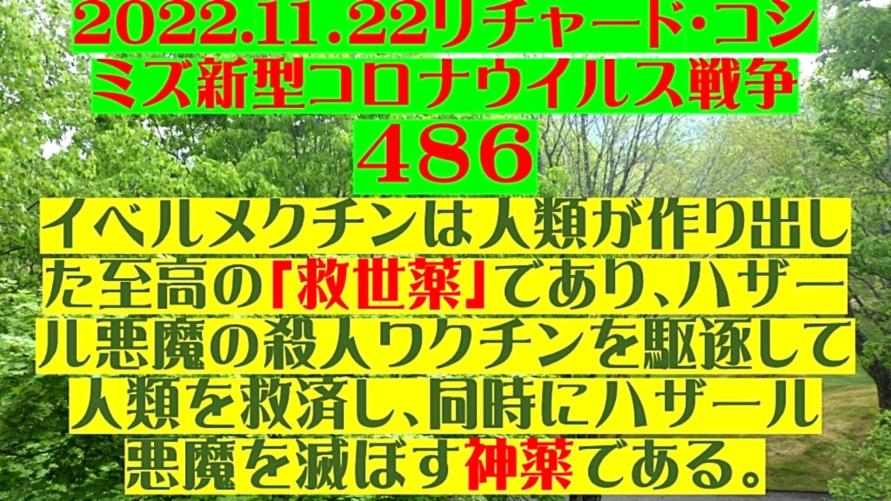 <span style="color: #cc4125;"><strong>「 テーマ:新型コロナウイルス戦争 486 」</strong></span><br><br><span style="color: #ff0000;"><strong>「『 イベルメクチン 』は、人類が作り出した至高の『 救世薬 』であり、『 ハザール悪魔の<br> 殺人ワクチンを駆逐 』して人類を救済し、同時に『 ハザール 悪魔を滅ぼす神薬 』である 」</strong></span><br><br><span style="color: #0000ff;"><strong>「『 イベルメクチン・アビガン・その他コロナ対策 』についてのご意見をお寄せ下さい! 」</strong></span><br><br> <strong>◐ E-mail:richardkoshimizu@gmail.com<br><br>*「クリエイターサポート」・「フォロー」・「ニコニ広告」等、是非ご協力下さい。 リチャード・コシミズ</strong><br><br><span style="color: #38761d;"><strong>◐リチャード・コシミズ 公式 ブログ</strong></span><br> <a href="https://richard-koshimizu.jimdosite.com/" target="_blank" rel="noopener nofollow">https://richard-koshimizu.jimdosite.com/</a><br><br><span style="color: #38761d;"><strong>◐リチャード・コシミズ 公式 ホームページ<br> </strong></span><a href="http://richardkoshimizu.boo.jp/" target="_blank" rel="noopener nofollow">http://richardkoshimizu.boo.jp/</a><br><br><span style="color: #38761d;"><strong>◐リチャード・コシミズ オンライン ショップ</strong></span><br> <a href="https://rkonline.shop-pro.jp/" target="_blank" rel="noopener nofollow">https://rkonline.shop-pro.jp/</a><br><br><span style="color: #38761d;"><strong>◐リチャード・コシミズ 講演会 公式 動画ギャラリー</strong></span><br> <a href="http://www.t-sskk.com/richardkoshimizu/video-gallery/index.html" target="_blank" rel="noopener nofollow">http://www.t-sskk.com/richardkoshimizu/video-gallery/index.html</a><br>