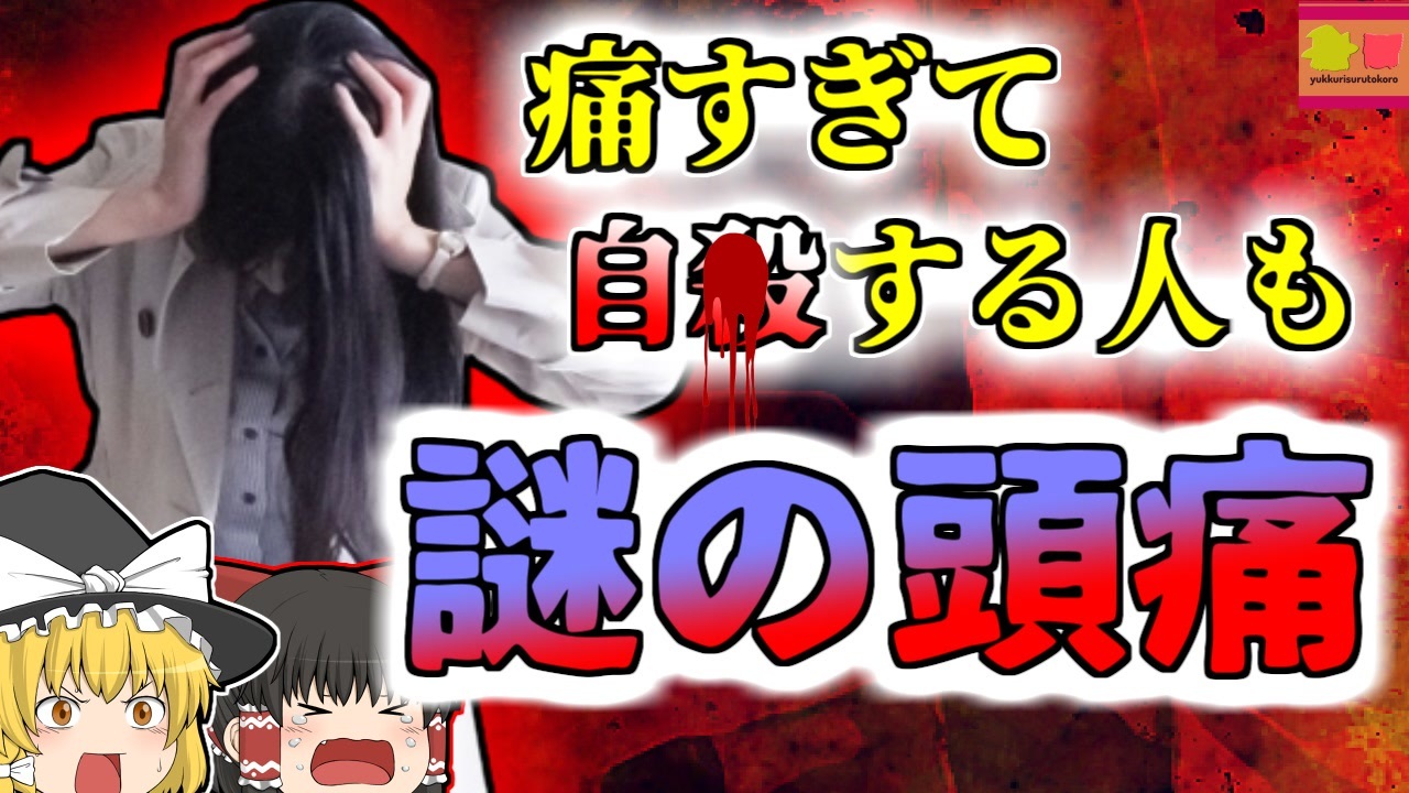 #頭痛 #群発頭痛 #世界三大激痛<br>今回紹介するのは、以前リクエストがありました「群発頭痛」に関する事例です。<br>兵庫県に暮らす女性「Aさん」はこの日、いつも通りに仕事を終え、両親と食事をした後、深夜になってベッドに入りました。<br>午前零時頃。彼女は右目の奥に鈍い痛みを感じ目を覚ました。その痛みは徐々に強くなっていき、まるで目の裏側を何か強い力でえぐられているような激痛に変わり、Aさんは涙をボロボロ流しながらベッドで悶絶していました。<br>両親を起こして相談し、とりあえず市販の鎮痛剤を飲んで様子を見ることにしましたが、それは一向に効く気配がありません。<br>ついに我慢できなくなったAさんは、救急に通報し、その後到着した救急車で病院に運ばれて行きました。<br><br>病院ですぐに様々な検査が行われましたが、そのすべてで以上は認められませんでした。<br>彼女の症状、そして検査結果などから医師は「群発頭痛の可能性が高い」と判断。<br><br>この群発頭痛は、『世界三大激痛』に数えられるほどつらい痛みで、欧米ではその痛みに耐えかね、自ら命を絶ってしまう人がいるほど、耐え難いものでした。<br><br><a href="#" class="seekTime" data-seekTime="00:00" onclick="seekNicoPlayer('#00:00'); return false;">#00:00</a> 冒頭挨拶<br><a href="#" class="seekTime" data-seekTime="00:42" onclick="seekNicoPlayer('#00:42'); return false;">#00:42</a> 視聴上の注意<br><a href="#" class="seekTime" data-seekTime="1:16" onclick="seekNicoPlayer('#1:16'); return false;">#1:16</a> 視聴上の注意<br><a href="#" class="seekTime" data-seekTime="2:08" onclick="seekNicoPlayer('#2:08'); return false;">#2:08</a> 新社会人の「Aさん」<br><a href="#" class="seekTime" data-seekTime="2:33" onclick="seekNicoPlayer('#2:33'); return false;">#2:33</a> 謎の痛み<br><a href="#" class="seekTime" data-seekTime="3:37" onclick="seekNicoPlayer('#3:37'); return false;">#3:37</a> 検査結果<br><a href="#" class="seekTime" data-seekTime="4:33" onclick="seekNicoPlayer('#4:33'); return false;">#4:33</a> 頭痛の種類と「群発頭痛」<br><a href="#" class="seekTime" data-seekTime="6:55" onclick="seekNicoPlayer('#6:55'); return false;">#6:55</a> 別の治療法を模索<br><a href="#" class="seekTime" data-seekTime="8:23" onclick="seekNicoPlayer('#8:23'); return false;">#8:23</a> 世界三大激痛の一つ<br><a href="#" class="seekTime" data-seekTime="8:56" onclick="seekNicoPlayer('#8:56'); return false;">#8:56</a> 予防が最も重要<br><a href="#" class="seekTime" data-seekTime="9:55" onclick="seekNicoPlayer('#9:55'); return false;">#9:55</a> 周りの理解も必要な病気<br><br><br>引用・出展・参考文献<br>三叉神経痛 脳神経疾患について | 東京女子医科大学 <br><a href="https://ishort.ink/XrKw" target="_blank" rel="noopener nofollow">https://ishort.ink/XrKw</a><br>大正製薬 群発頭痛<br><a href="https://ishort.ink/z5Yo" target="_blank" rel="noopener nofollow">https://ishort.ink/z5Yo</a><br>サワイ健康推進課 <br>「群発頭痛」への理解を深めよう<br><a href="https://ishort.ink/i47F" target="_blank" rel="noopener nofollow">https://ishort.ink/i47F</a><br>日本頭痛学会<br><a href="https://ishort.ink/wU8K" target="_blank" rel="noopener nofollow">https://ishort.ink/wU8K</a><br />※この動画は過去の事件を知り、現在でも同じことが発生する危険性を再認識、関与しないように促すための動画であり、視聴者を扇動、動揺を誘うためのコンテンツではありません。<br><br>ご要望にお応えして、メンバーシップの開設を行いました。<br>下記URLからも登録可能ですので、ご興味がある方は是非ご参加ください。<br><a href="https://www.youtube.com/channel/UCcT5a1J7XJW7CLYI2RKl4pw/join" target="_blank" rel="noopener nofollow">https://www.youtube.com/channel/UCcT5a1J7XJW7CLYI2RKl4pw/join</a><br><br><br>Twitter<br>→<a href="https://twitter.com/yukkurisurutoko" target="_blank" rel="noopener nofollow">https://twitter.com/yukkurisurutoko</a><br><br>取り急ぎ、簡易的にですがマイリストを作りました。<br>【ゆっくり解説】事故・事件関係紹介リスト <br><a href="https://www.nicovideo.jp/mylist/71034319" target="_blank" rel="noopener nofollow">https://www.nicovideo.jp/mylist/71034319</a><br>【ゆっくり解説】放射線系事故<br><a href="https://www.nicovideo.jp/mylist/71034368" target="_blank" rel="noopener nofollow">https://www.nicovideo.jp/mylist/71034368</a><br>【ゆっくり解説】鉄道系事故・事件関連<br><a href="https://www.nicovideo.jp/mylist/71034379" target="_blank" rel="noopener nofollow">https://www.nicovideo.jp/mylist/71034379</a>
