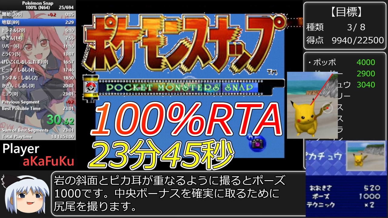 スティック設定をノーマルにして始める方法<br>0.1枚でも写真を提出したデータを作成してオーキド研究所で「きろく」(不要な可能性あり)<br>1.電源リセットして「はじめから」を選択<br>2.オーキド研究所で「きろく」<br>3.「きろくちゅう・・・」と表示され音が消えたらリセット<br>4.「つづきから」が無い初期データになり、オプションでスティック設定を変更した後に「はじめから」を選ぶとスティック設定が反映された状態になる。<br><br>配信してます<br><a href="https://www.youtube.com/c/aKaFuKuSnap" target="_blank" rel="noopener nofollow">https://www.youtube.com/c/aKaFuKuSnap</a><br><br>ポケモンスナップ講習会<br><a href="https://twipla.jp/events/535692" target="_blank" rel="noopener nofollow">https://twipla.jp/events/535692</a><br><br>各種セットアップ<br><a href="https://www.nicovideo.jp/watch/sm30599898" class="watch">sm30599898</a><br><br>出張ヤドラン<br><a href="https://youtu.be/5DRhUeuXCzs" target="_blank" rel="noopener nofollow">https://youtu.be/5DRhUeuXCzs</a><br><br>ポケモンスナップのスコア投稿サイト(日本語対応)<br><a href="http://cyberscore.me.uk/game/15" target="_blank" rel="noopener nofollow">http://cyberscore.me.uk/game/15</a><br><a href="https://cyberscore.me.uk/game/2785" target="_blank" rel="noopener nofollow">https://cyberscore.me.uk/game/2785</a><br><br>ポケモンスナップについて色々書いている自ブログ<br><a href="https://akafuku.hateblo.jp" target="_blank" rel="noopener nofollow">https://akafuku.hateblo.jp</a><br><br>ポケモンスナップ学会Discord<br><a href="https://discord.gg/n42eWa5" target="_blank" rel="noopener nofollow">https://discord.gg/n42eWa5</a><br><br>Newポケモンスナップ学会Discord<br><a href="https://discord.gg/MsTGWr4r3z" target="_blank" rel="noopener nofollow">https://discord.gg/MsTGWr4r3z</a><br><br>タイマー背景の艦これ卯月の作者<br><a href="https://twitter.com/yu_ame" target="_blank" rel="noopener nofollow">https://twitter.com/yu_ame</a>